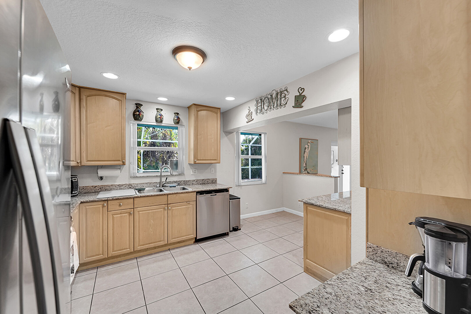 Arched Cabinets, Baseboards Wall, Built In Desk, Ceiling Fan, Drywall, G Shaped Kitchen, Kitchen Peninsula, Natural Light, Office Area, Opens To Living Area, Raised Cabinets, Recessed Lighting, Stone Countertops, Textured Ceiling, Tile Floor, Toaster, U Shaped Kitchen, Vent, Arched Cabinets, Baseboards Wall, Recessed Lighting
