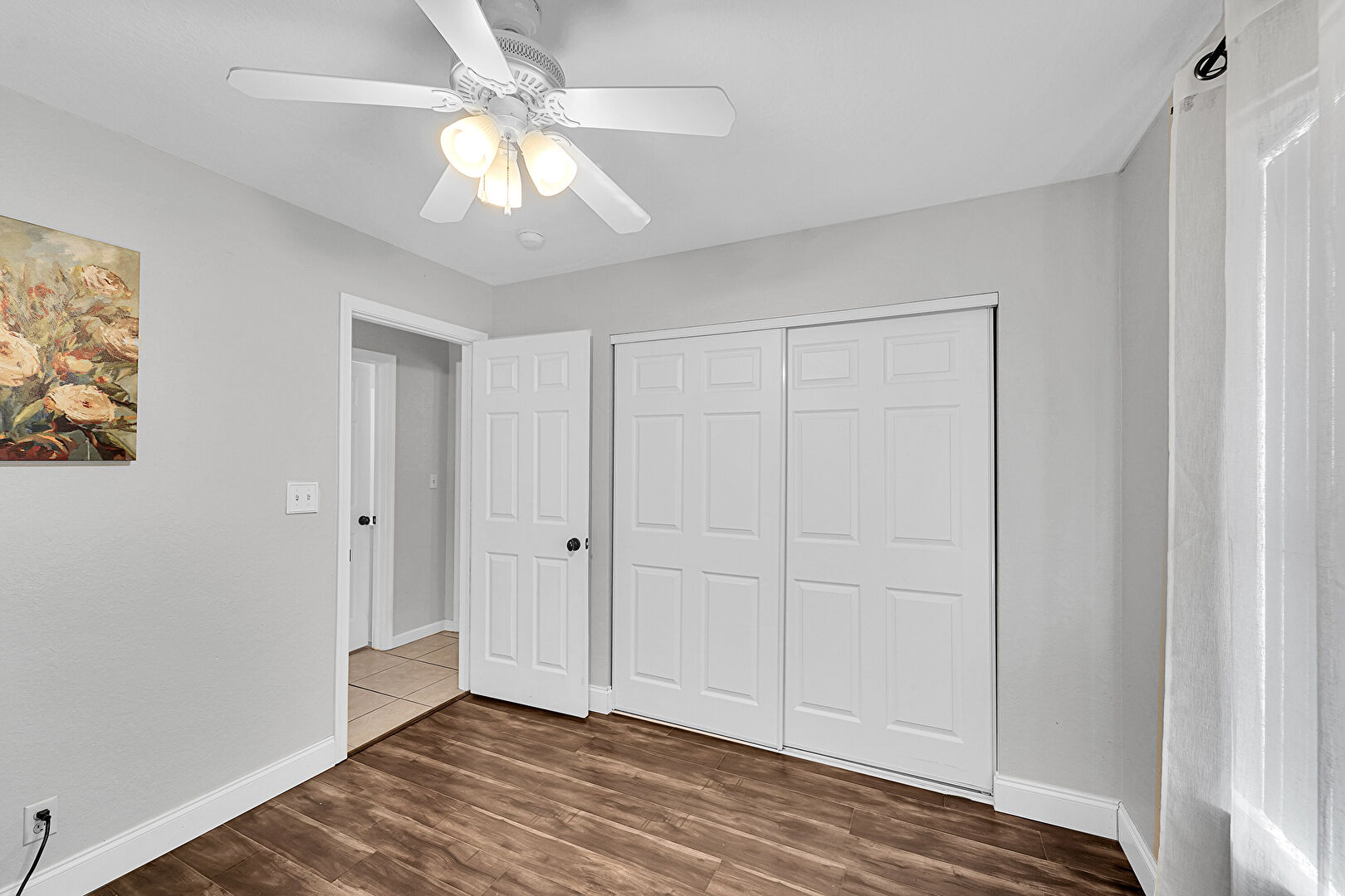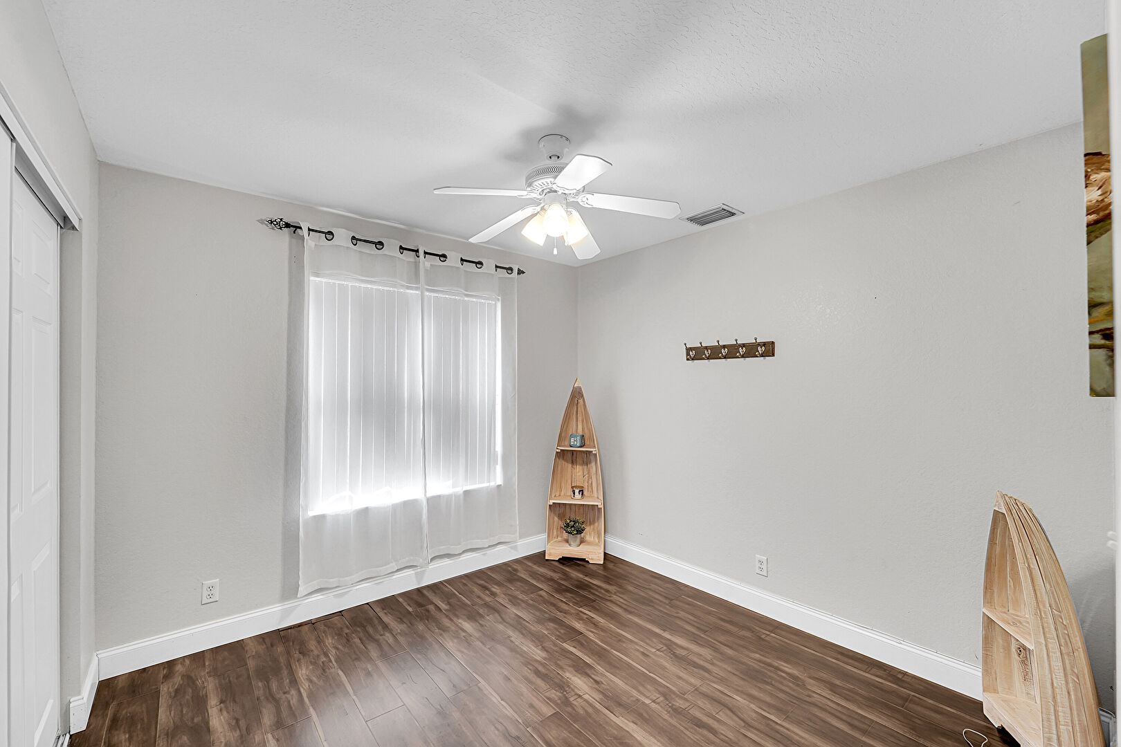 Baseboards Wall, Ceiling Fan, Closet, Drywall, Natural Light, Smoke Carbon Monoxide Detector, Textured Ceiling, Vent, Wood Finish Floor, Baseboards Wall, Closet, Vent