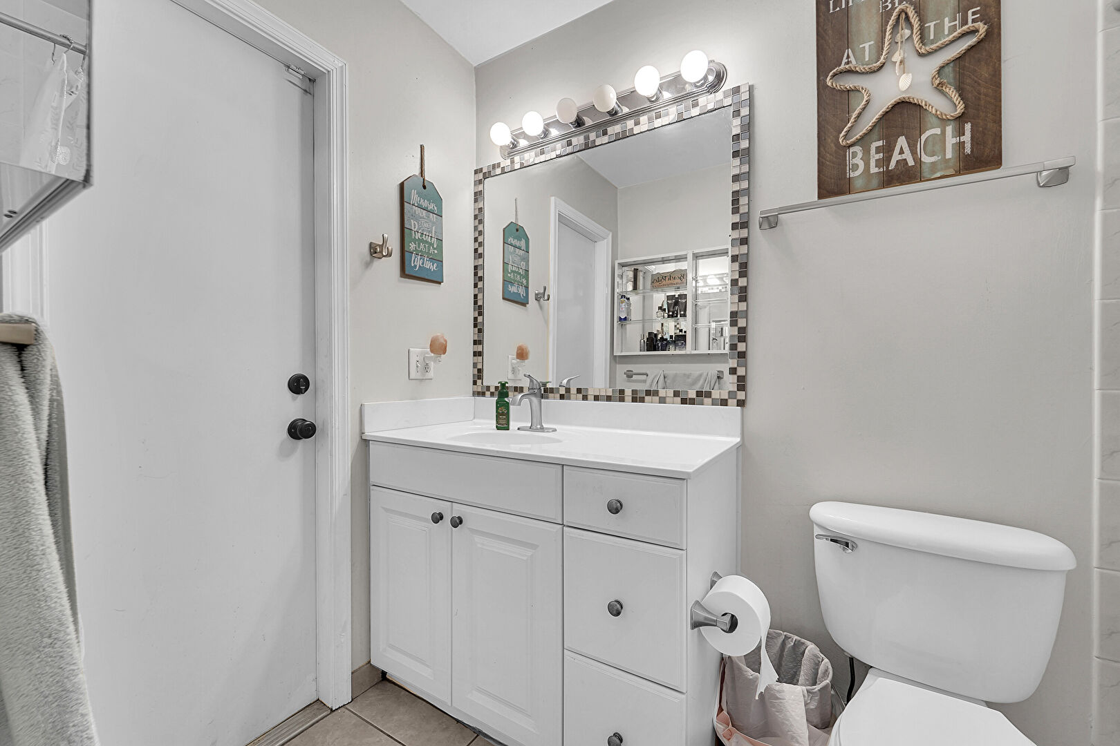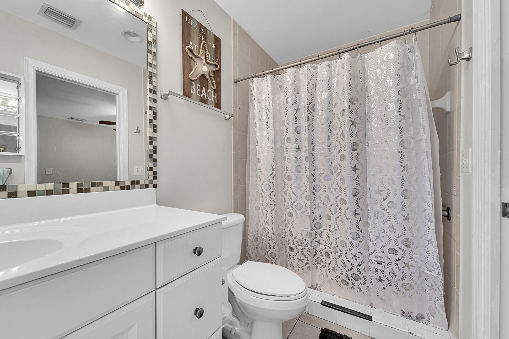 Baseboard Radiator, Drywall, Full Bathroom, Vanity, Vent, Tile Floor
