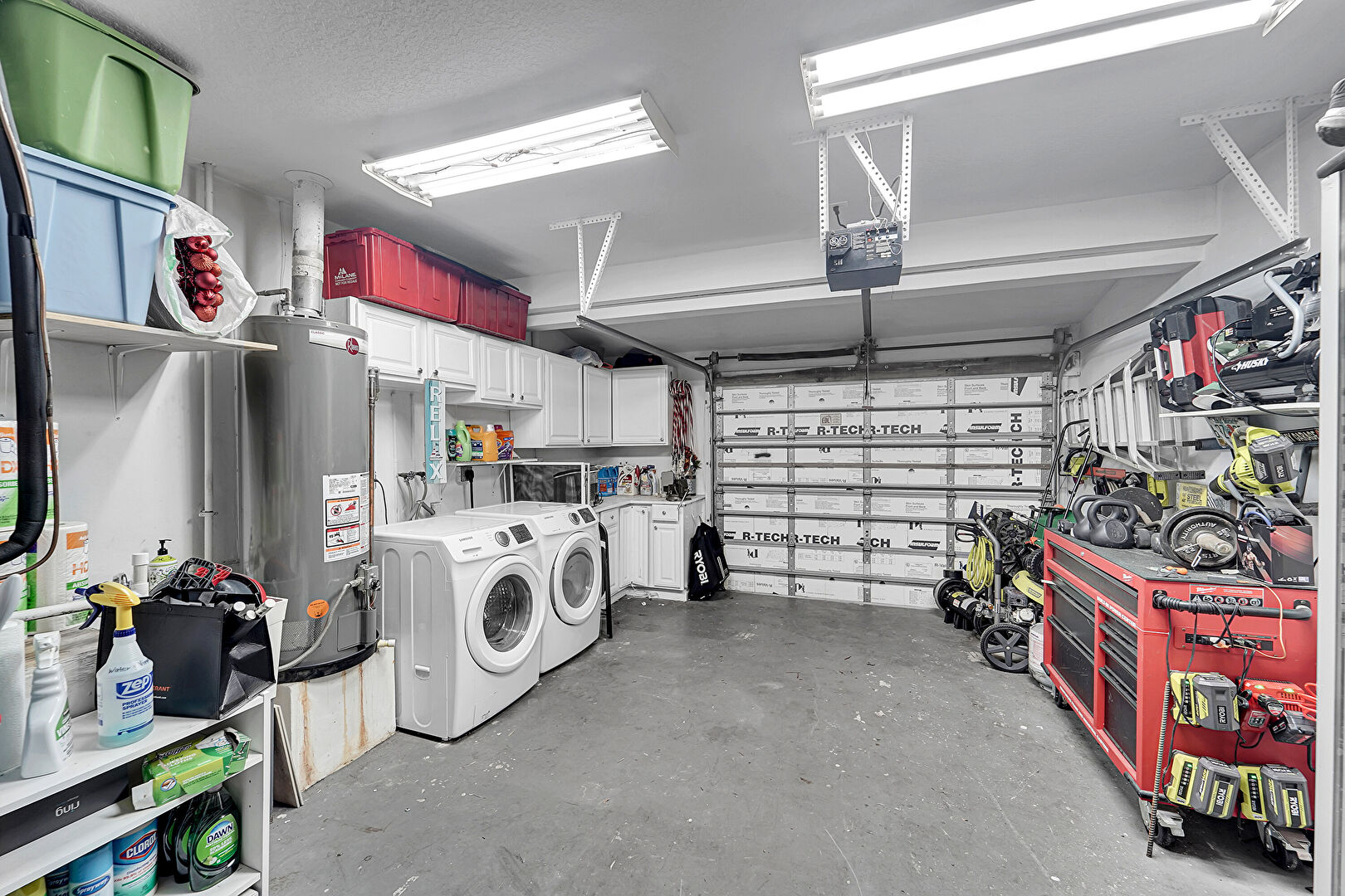 Garage, Garage Door Opener, Laundry, Water Heater, Drywall, Garage