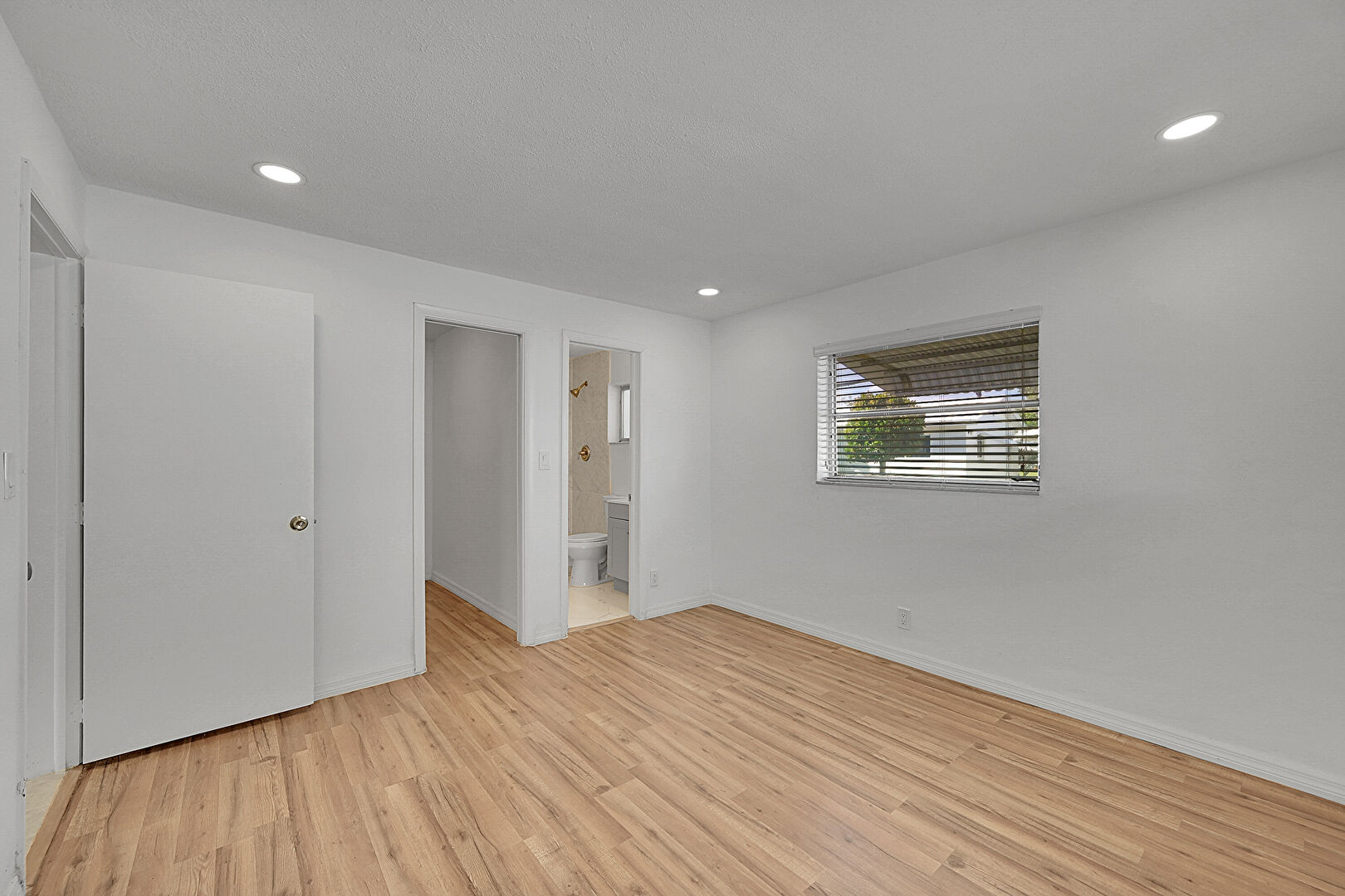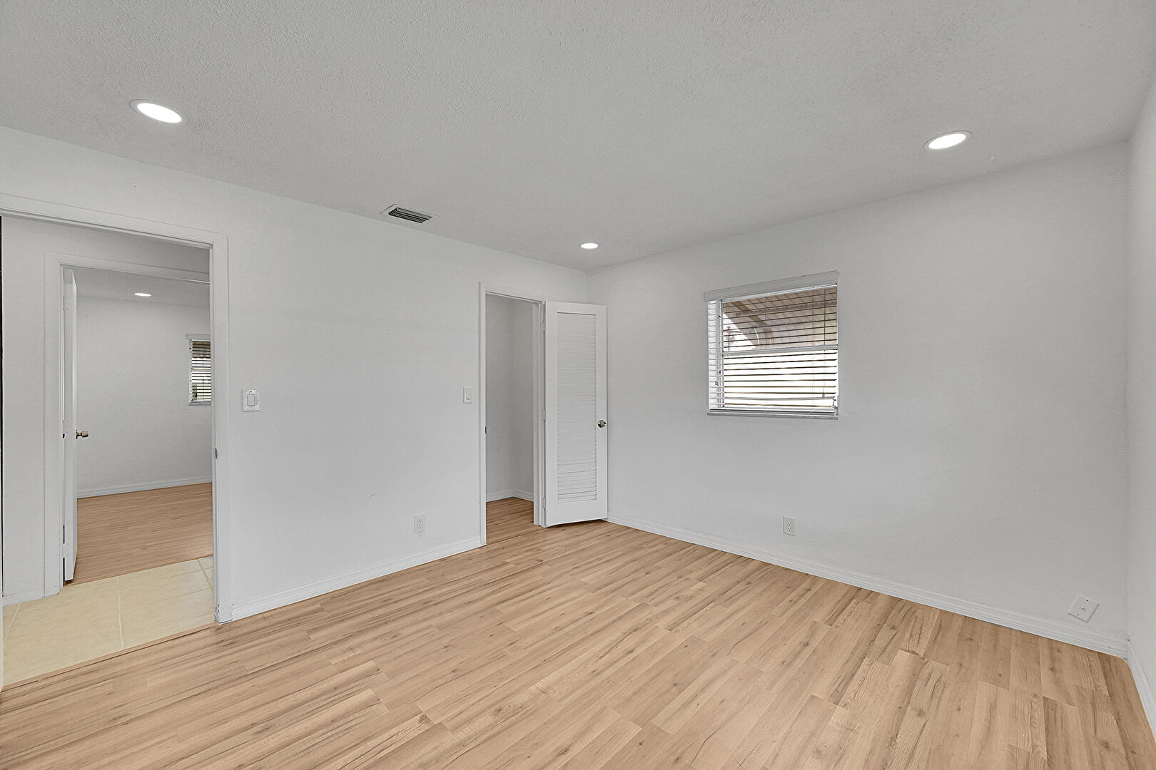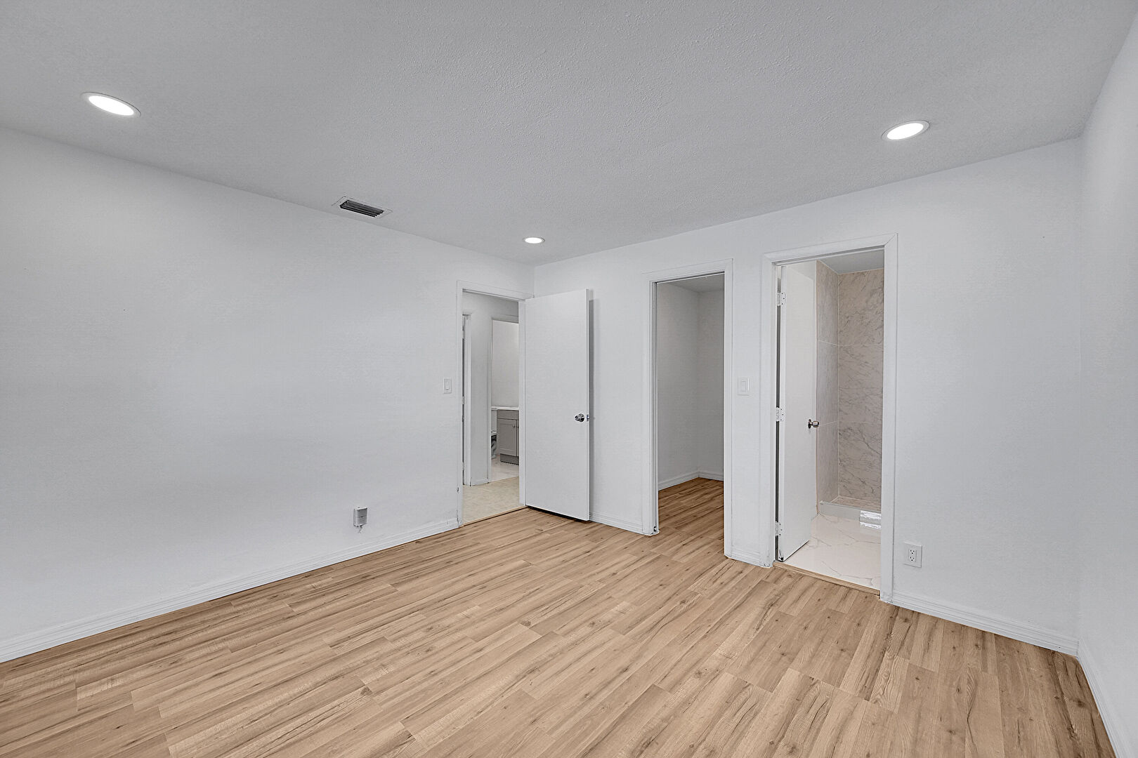 Baseboards Wall, Drywall, Ensuite Bathroom, Natural Light, Recessed Lighting, Textured Ceiling, Vent, Wood Finish Floor, Baseboards Wall, Vent, Walk In Closet