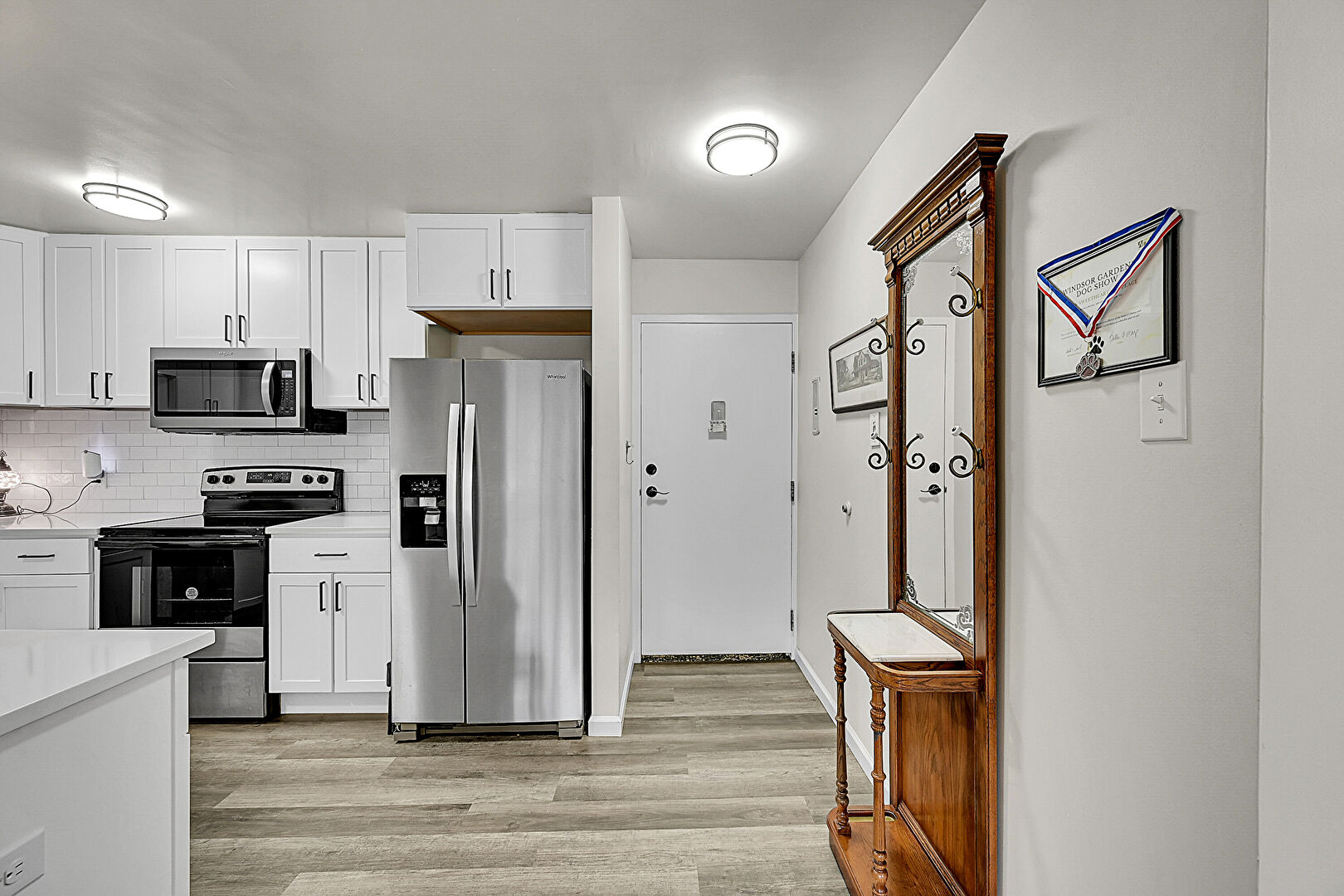 Baseboards Wall, Drywall, Kitchen Bar, Kitchen Island, L Shaped Kitchen, Shaker Cabinets, Smoke Carbon Monoxide Detector, Stone Countertops, Textured Ceiling, Wood Finish Floor, Baseboards Wall, L Shaped Kitchen, Stone Countertops, Wood Finish Floor