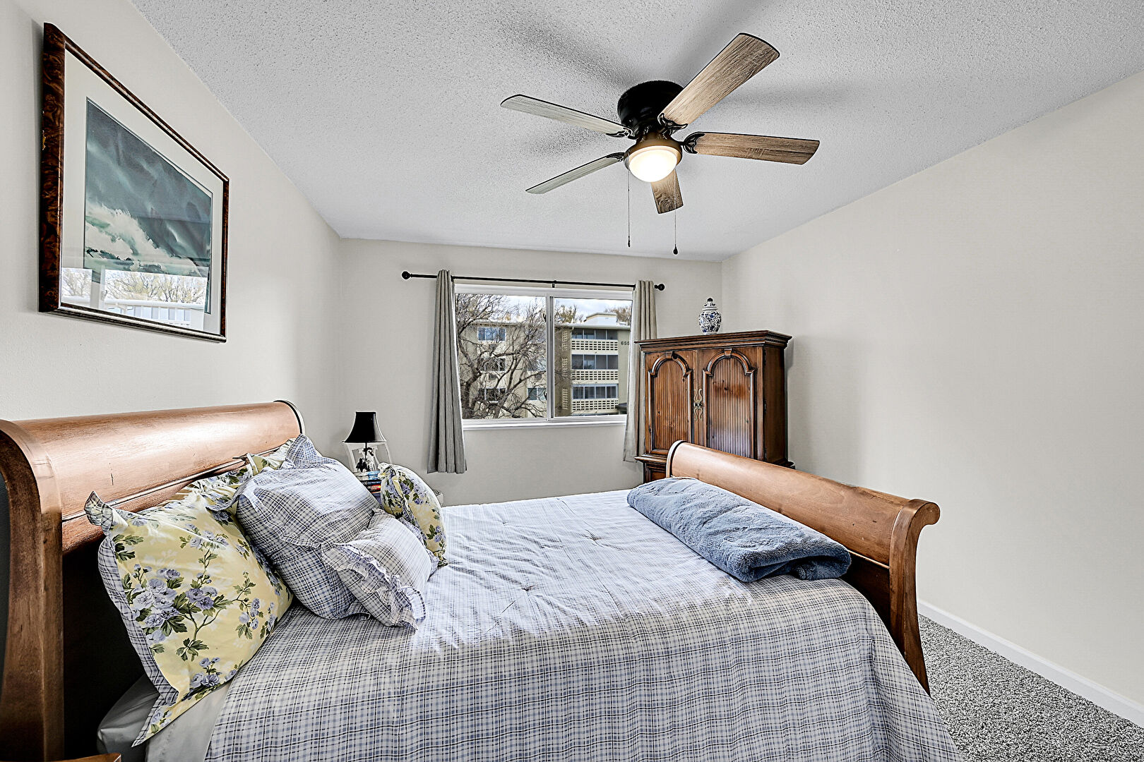 Baseboard Radiator, Baseboards Wall, Carpet, Closet, Drywall, Natural Light, Textured Ceiling, Ceiling Fan