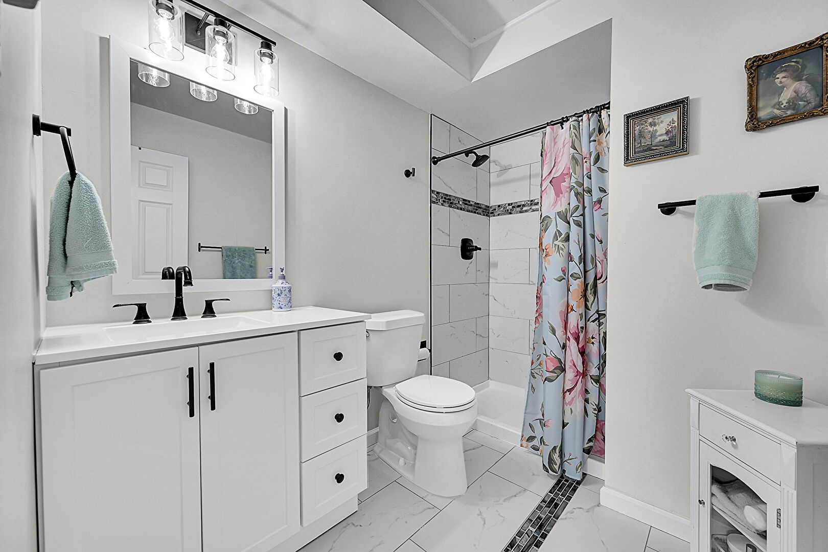 Baseboards Wall, Drywall, Full Bathroom, Vanity, Marble Finish Floor