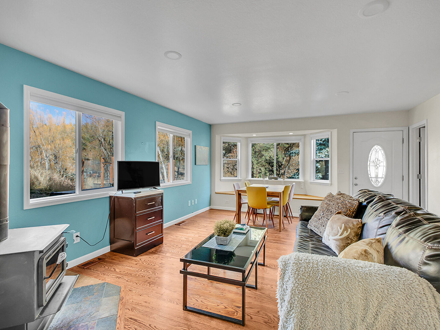 Arched Walkways, Baseboards Wall, Drywall, Natural Light, Recessed Lighting, Wood Finish Floor, Wood Stove, Arched Walkways, Recessed Lighting, Wood Finish Floor, Wood Stove