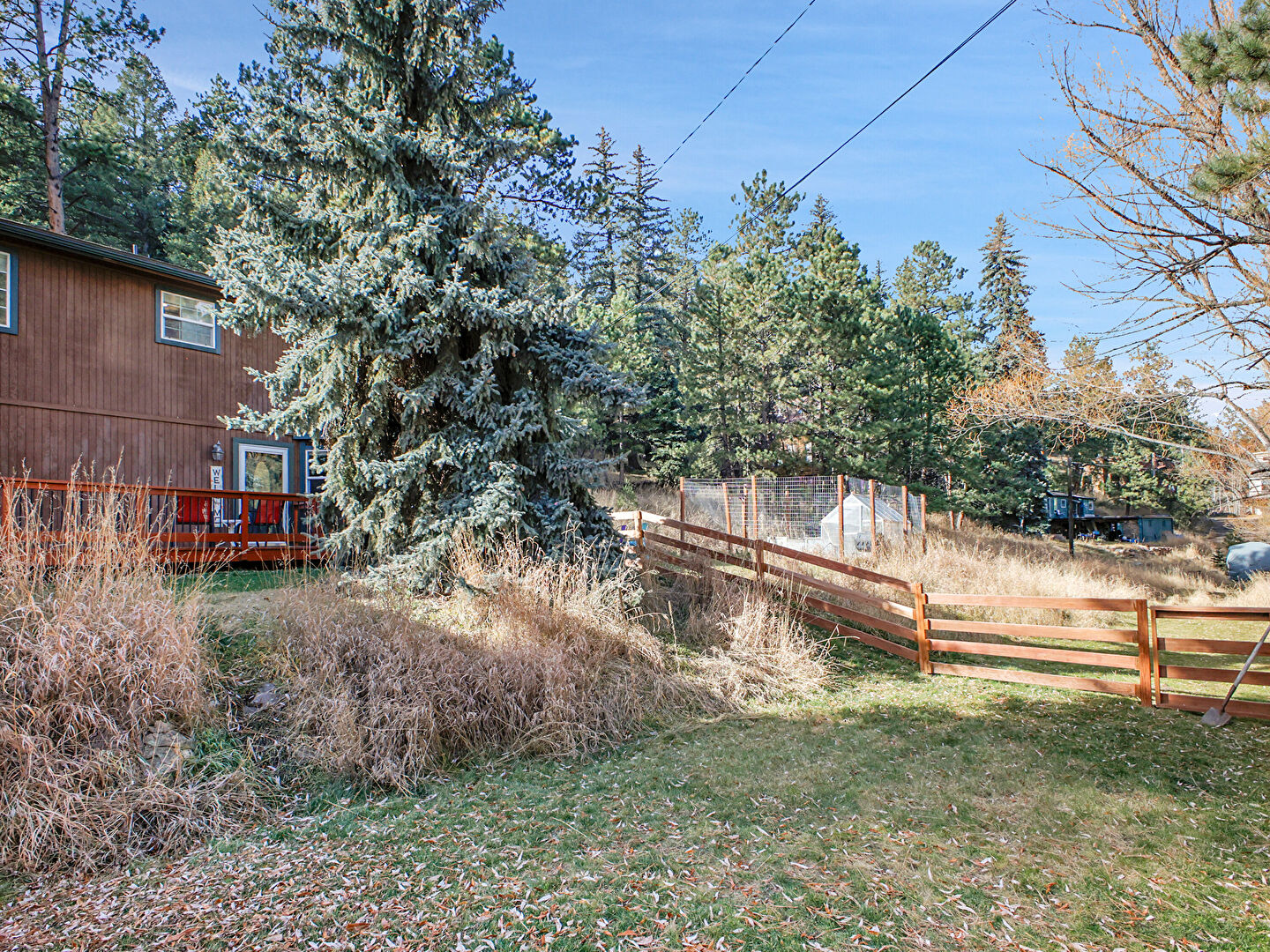 Basement Garage, Built In Garage, Deck, Driveway, Fence, Wood Siding, Vertical Siding
