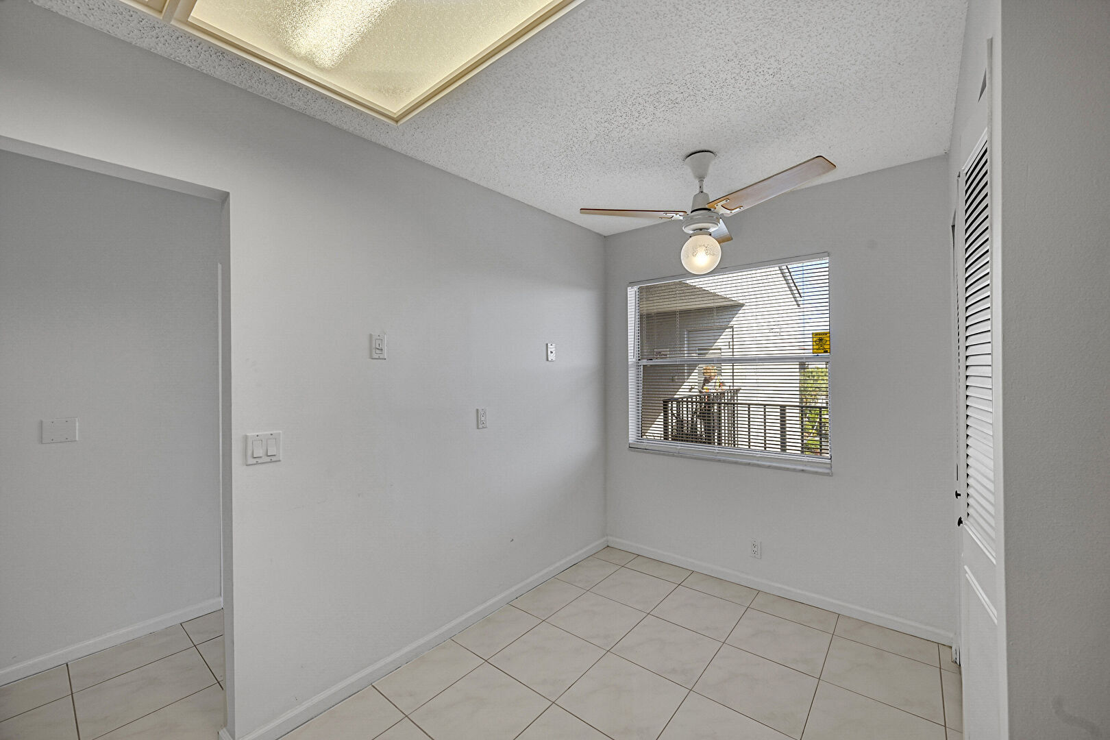 Ceiling Fan, Drywall, Natural Light, Textured Ceiling, Tile Floor, Baseboards Wall