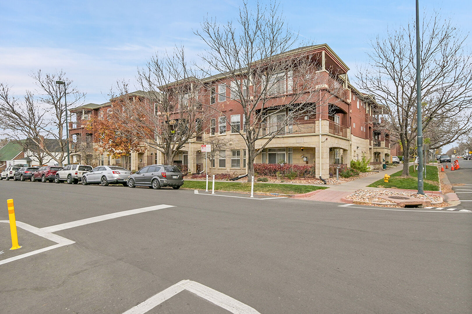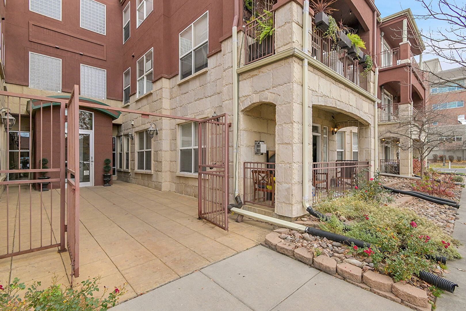 Apartment Complex View, Fence, Garage, Driveway, Parking Lot