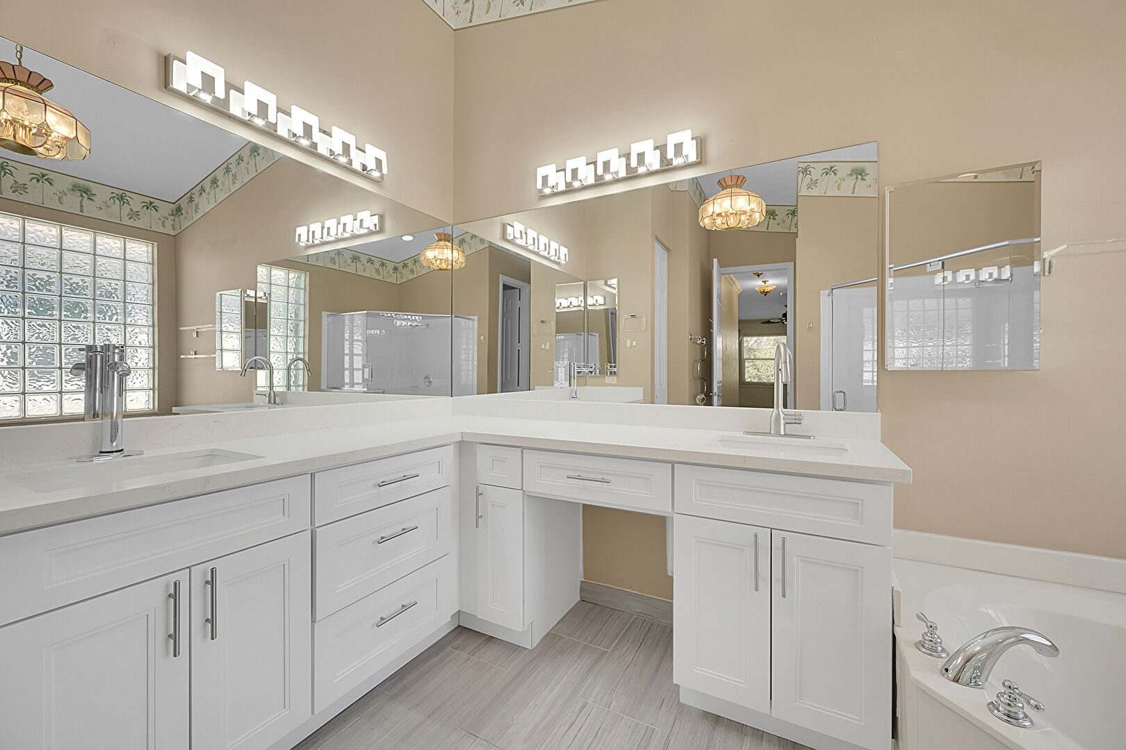 Baseboards Wall, Double Vanity, Drywall, Full Bathroom, Natural Light, Vanity, Full Bathroom, Tile Floor