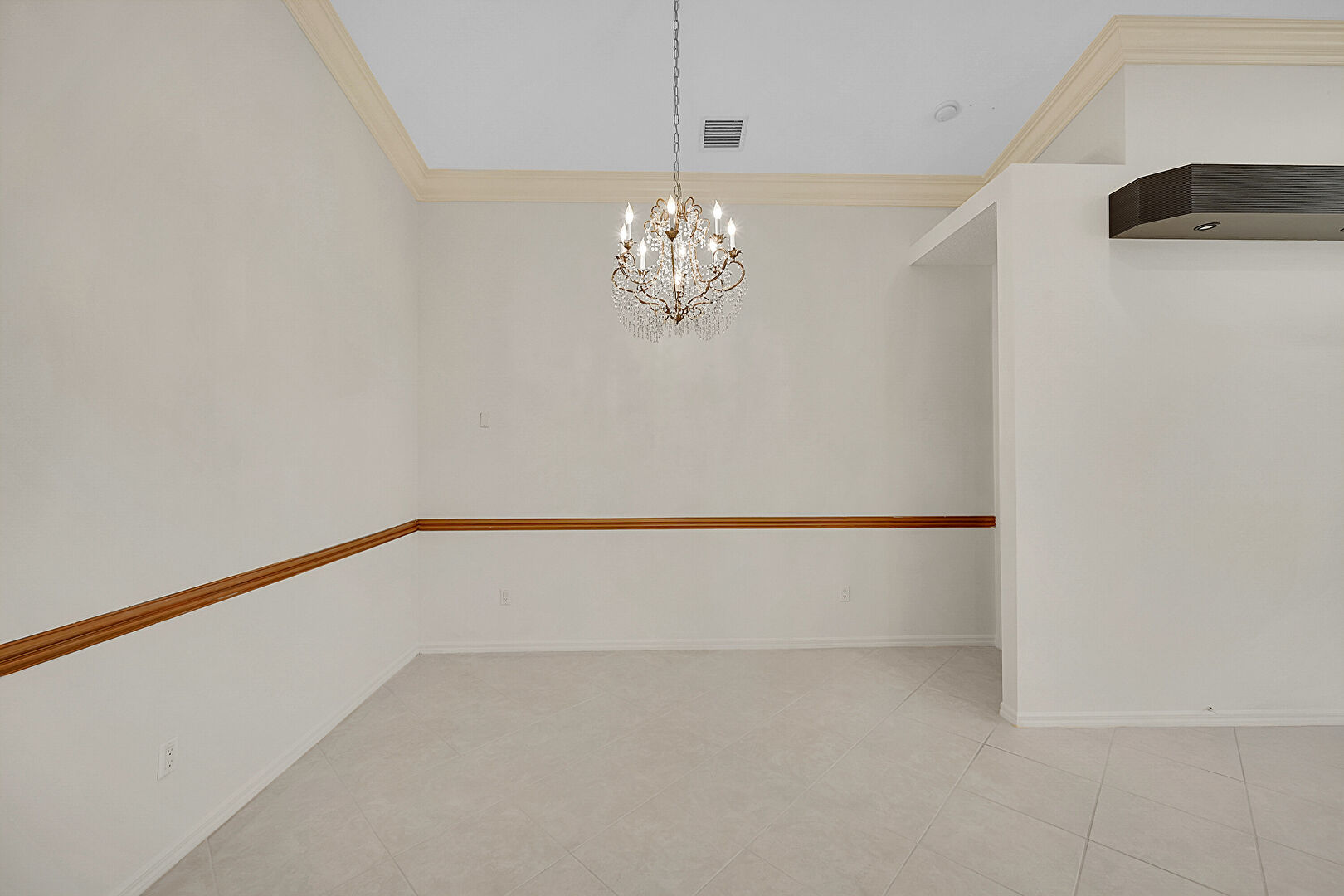 Baseboards Wall, Crown Molding, Drywall, Tile Floor, Vent, Notable Chandelier
