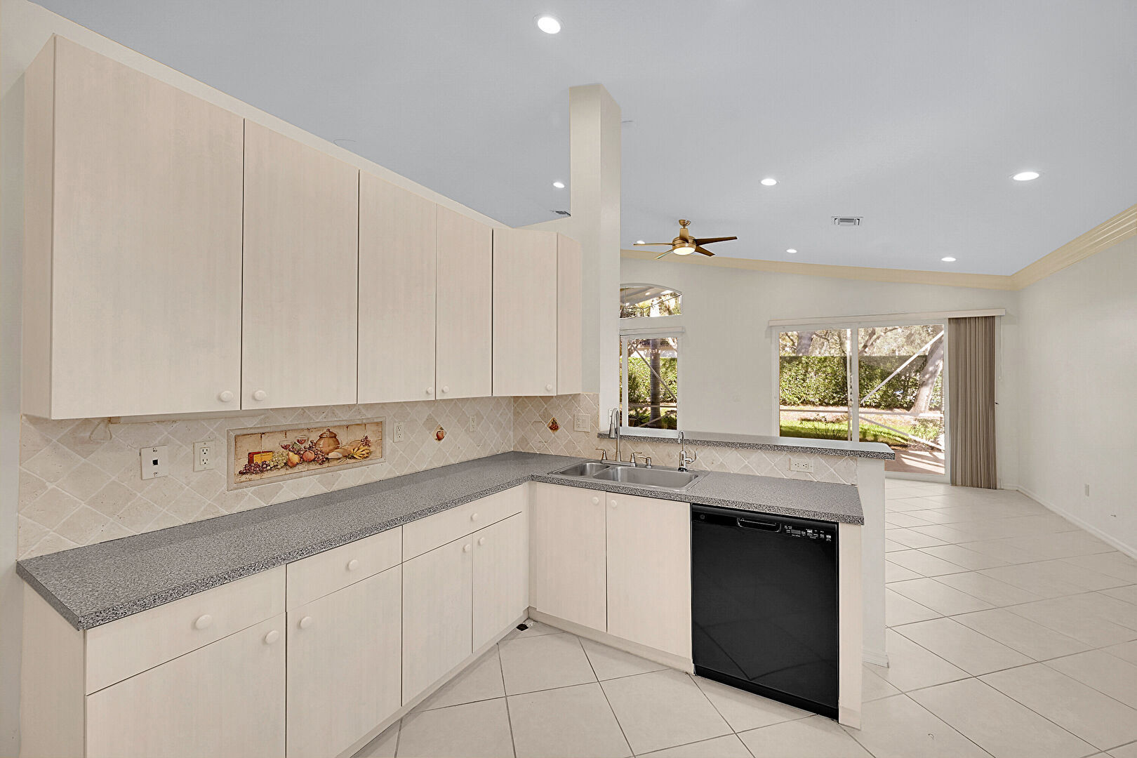 Baseboards Wall, Ceiling Fan, Crown Molding, Drywall, High Ceiling, Kitchen Peninsula, Natural Light, Opens To Living Area, Pendant Lighting, Recessed Lighting, Tile Floor, U Shaped Kitchen, Vaulted Ceiling, Vent, Notable Chandelier, Tile Floor, Vaulted Ceiling
