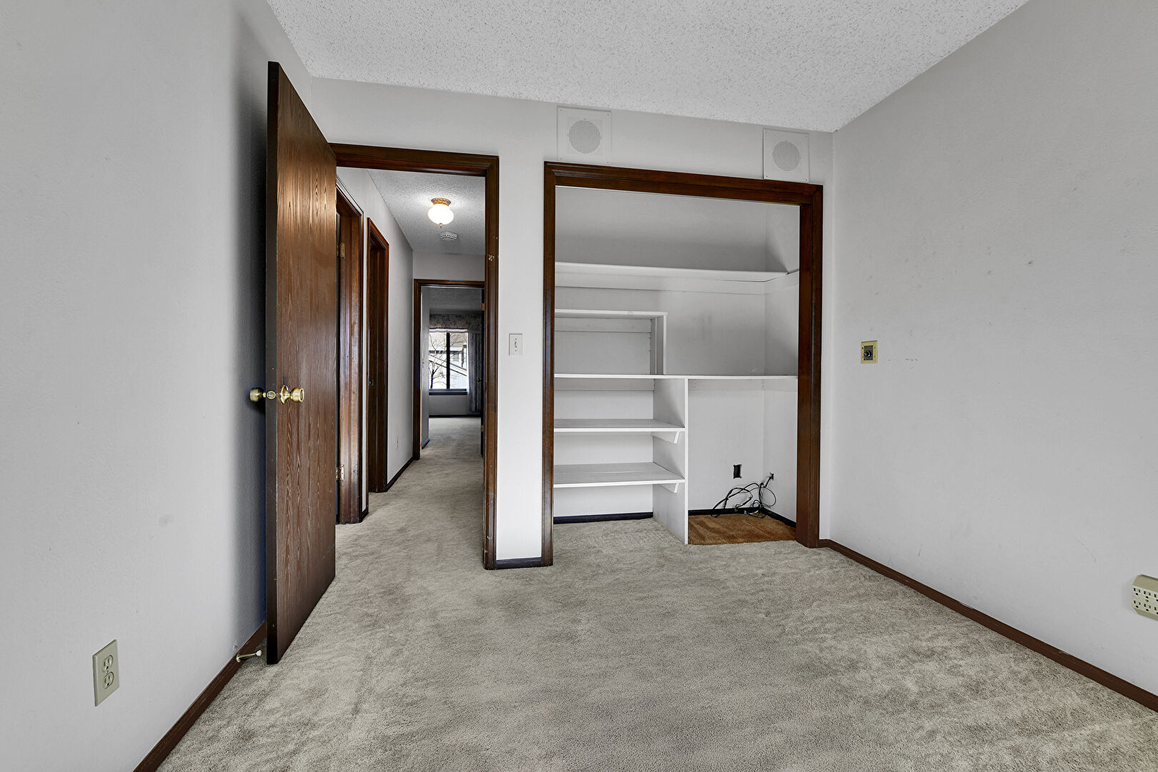 Carpet, Closet, Drywall, Natural Light, Textured Ceiling, Vent, Baseboards Wall