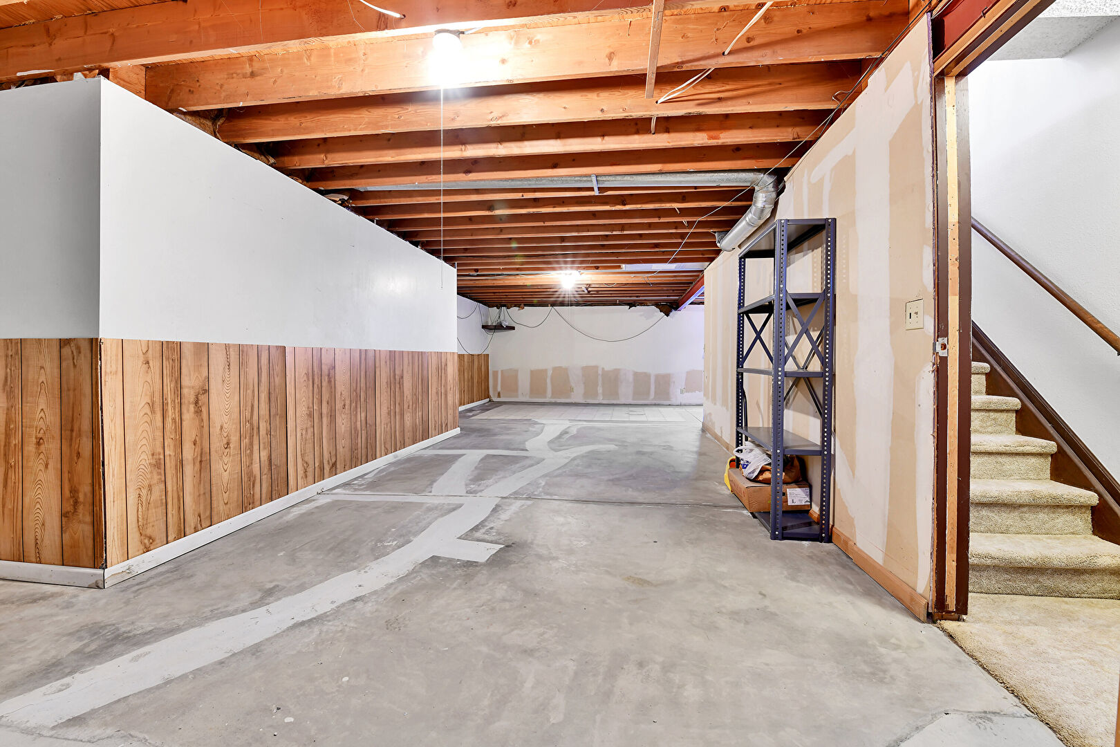 Baseboards Wall, Basement, Concrete Foundation, Drywall, Furnace, Laundry, Natural Light, Stairs, Vent, Wainscot Wall, Water Heater, Wood Wall, Basement, Concrete Foundation, Drywall, Washer Dryer, Wood Wall
