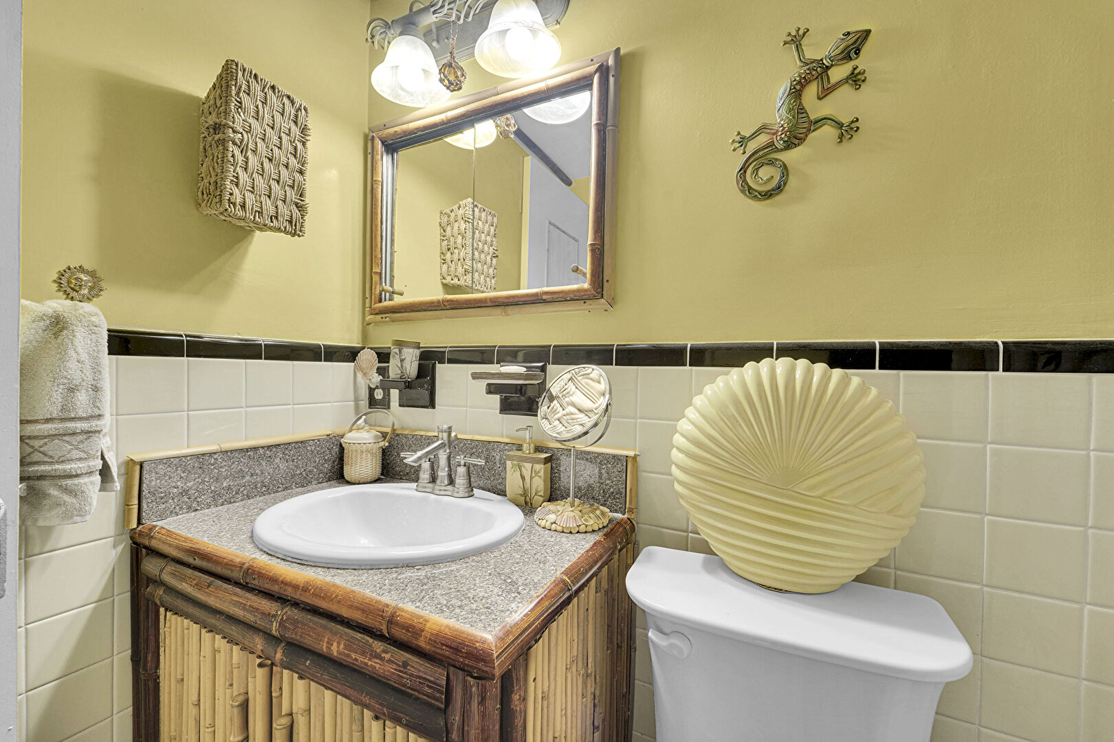 Drywall, Half Bathroom, Tile Wall, Vanity, Wainscot Wall, Drywall, Full Bathroom