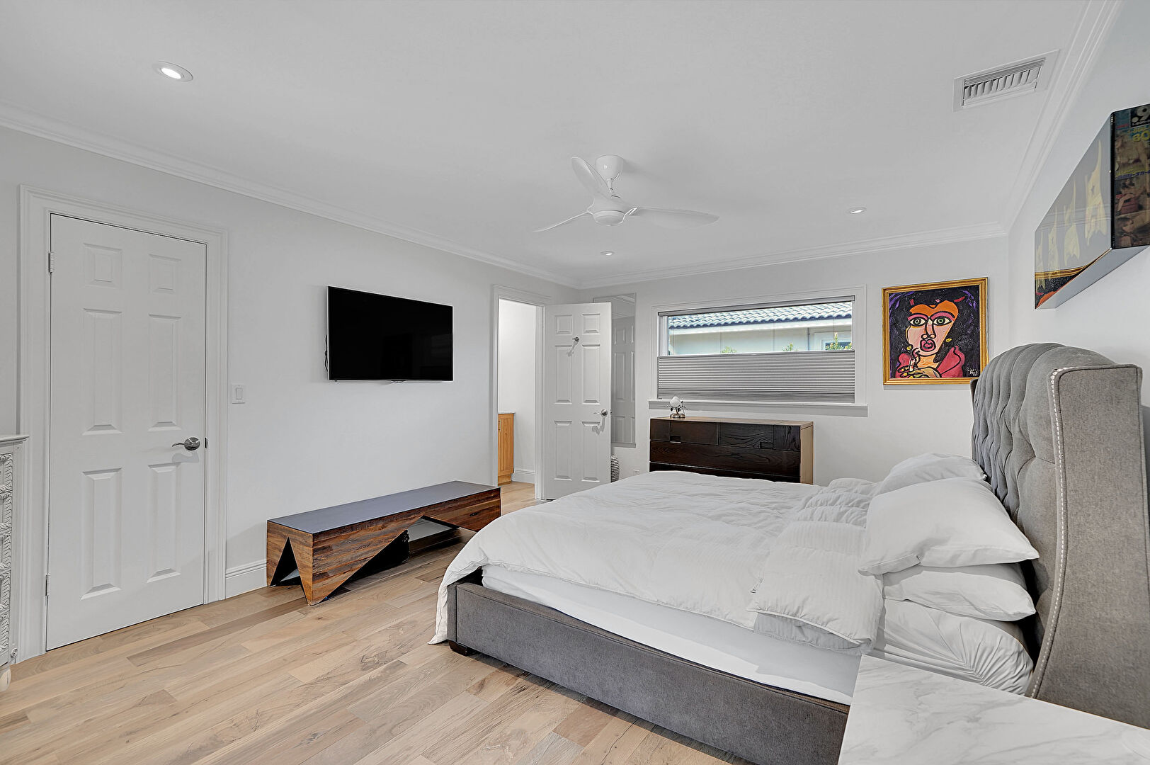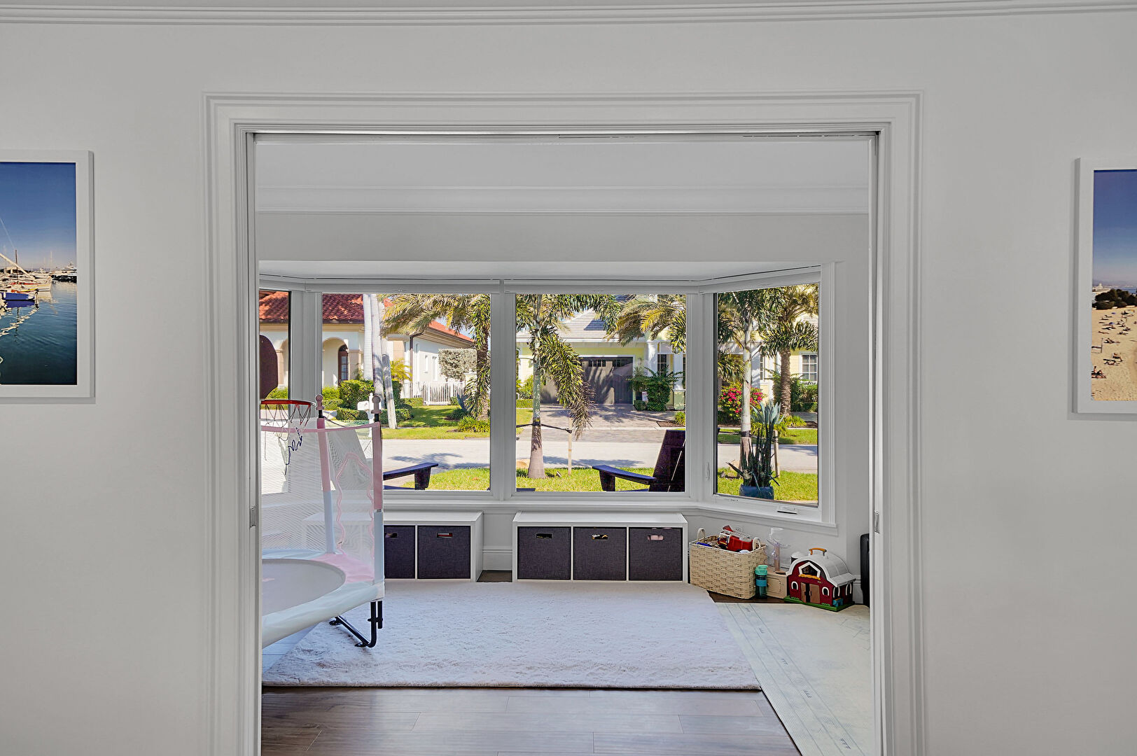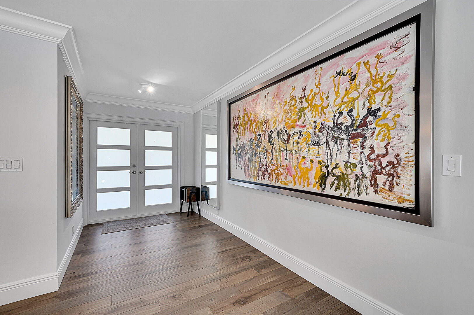 Baseboards Wall, Ceiling Fan, Crown Molding, Drywall, French Doors, Natural Light, Recessed Lighting, Vent, Wood Finish Floor, Drywall, Natural Light, Pool View, Recessed Lighting