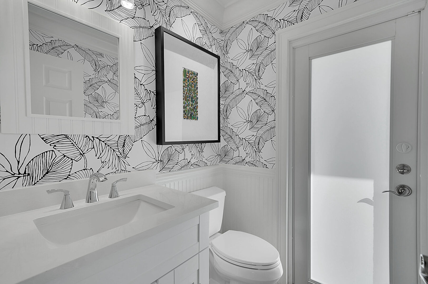 Crown Molding, Drywall, Full Bathroom, Half Bathroom, Vanity, Vent, Wallpaper Wall, Vanity, Wainscot Wall