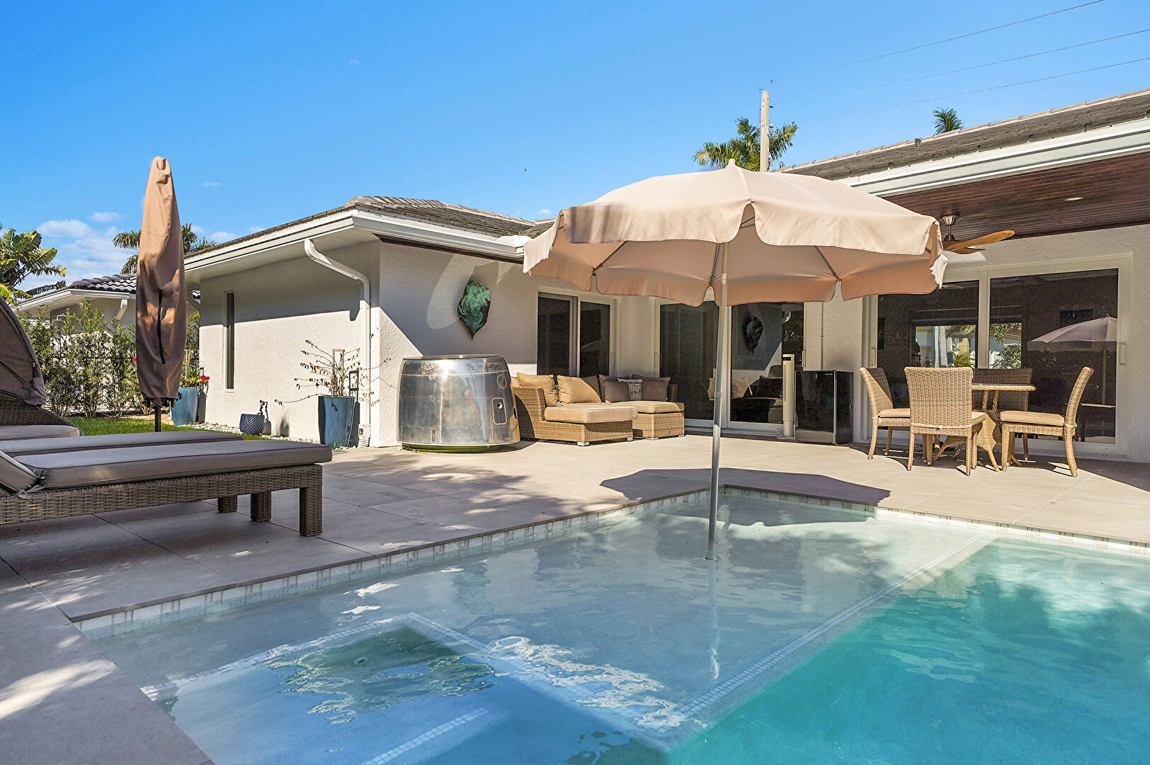 Ceiling Fan, Downspout, Fence, Grill, Gutters, Handrail, Hot Tub, Outdoor Dining Area, Outdoor Living Space, Patio, Pool, Ceiling Fan, Fence, Grill, Hot Tub, Patio, Pool, Stucco Siding