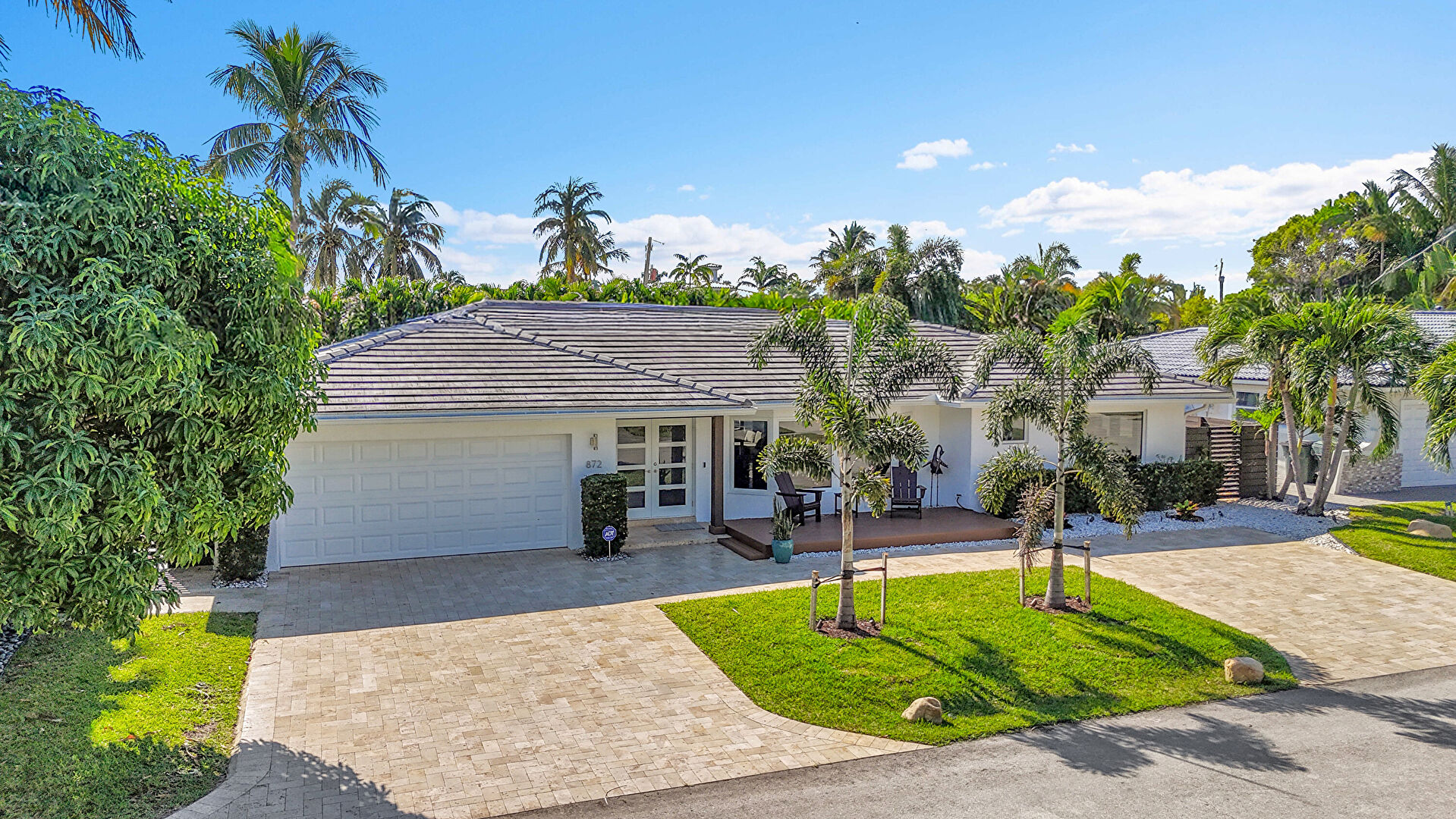 Downspout, Driveway, Fence, Lawn, Parking Pad, Porch, Stucco Siding, Tile Roof, Downspout, Lawn, Porch, Stucco Siding, Tile Roof