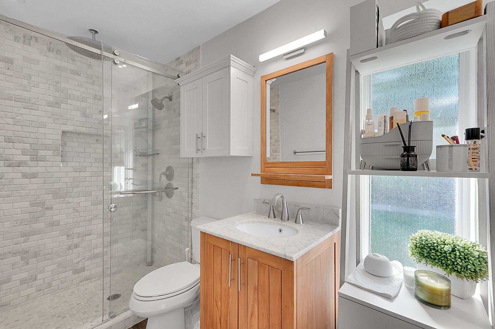 Combined Bath Shower, Drywall, Full Bathroom, Two Single Vanities, Vanity, Full Bathroom, Natural Light