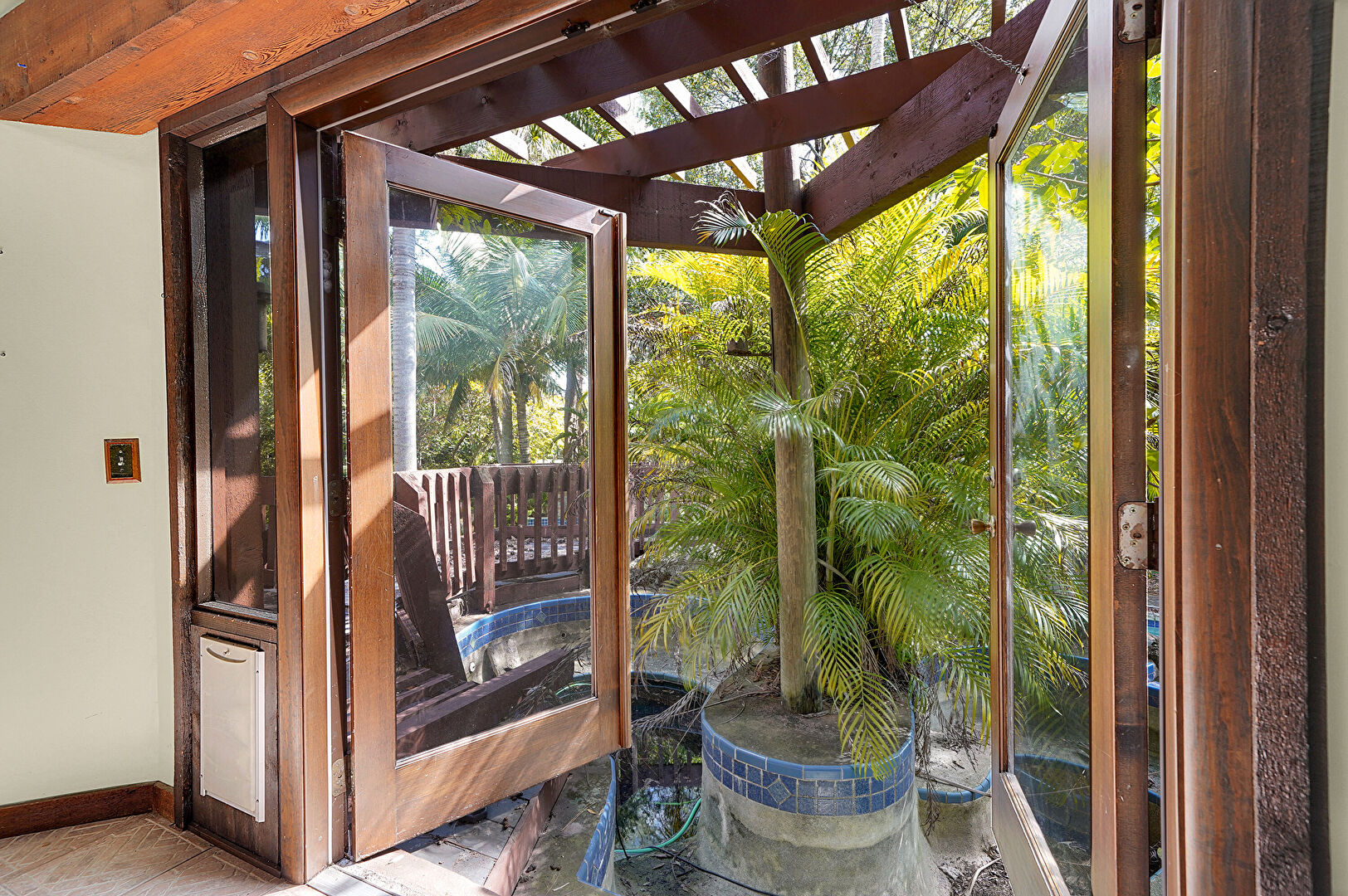 Beamed Ceiling, Natural Light, Sunroom, Wood Finish Floor, Wood Wall, Wood Ceiling