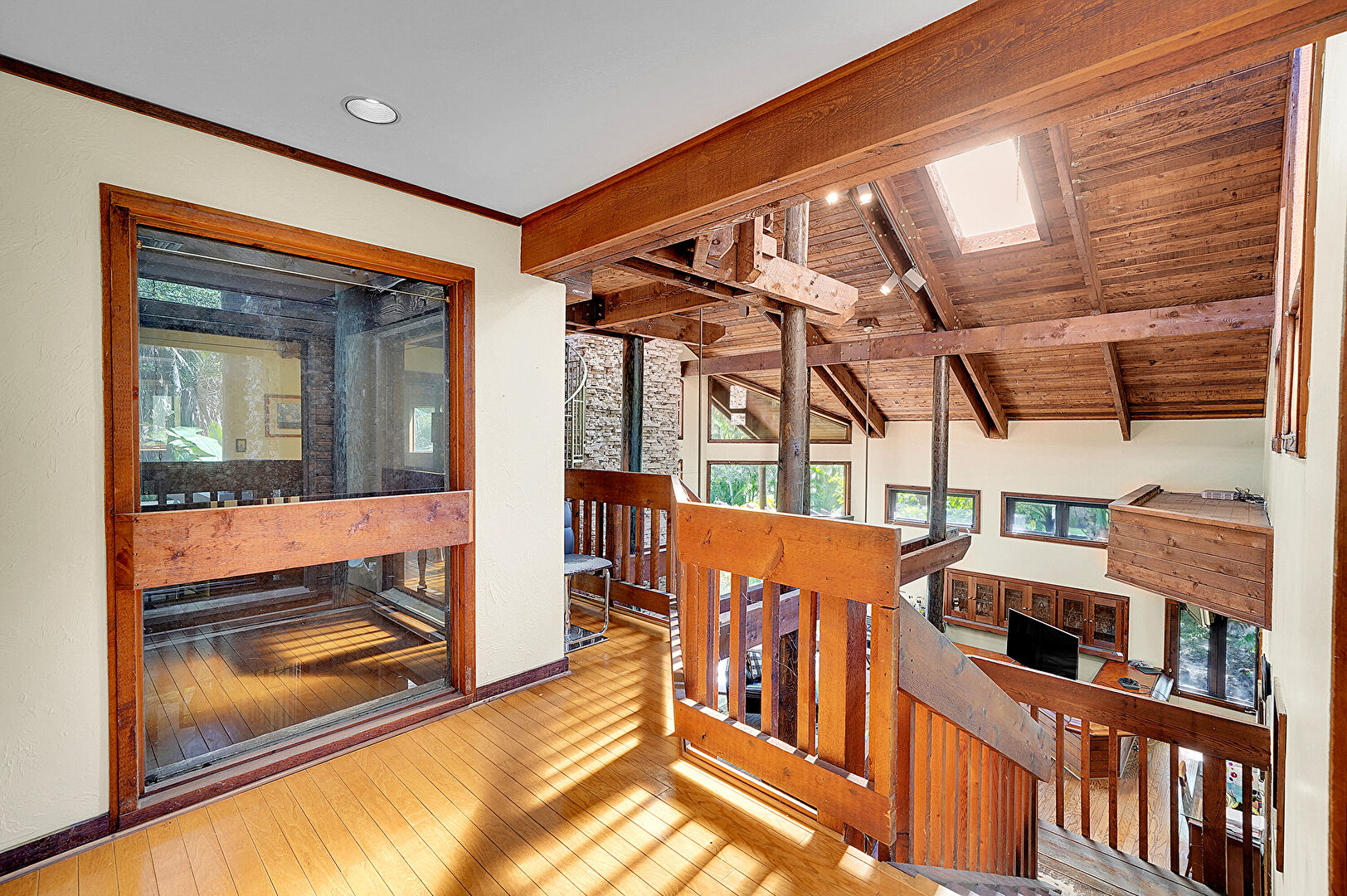 Baseboards Wall, Beamed Ceiling, Drywall, Elevator, High Ceiling, Loft, Natural Light, Recessed Lighting, Skylight, Stairs, Vaulted Ceiling, Wood Ceiling, Wood Finish Floor, Beamed Ceiling, Drywall, Wood Finish Floor