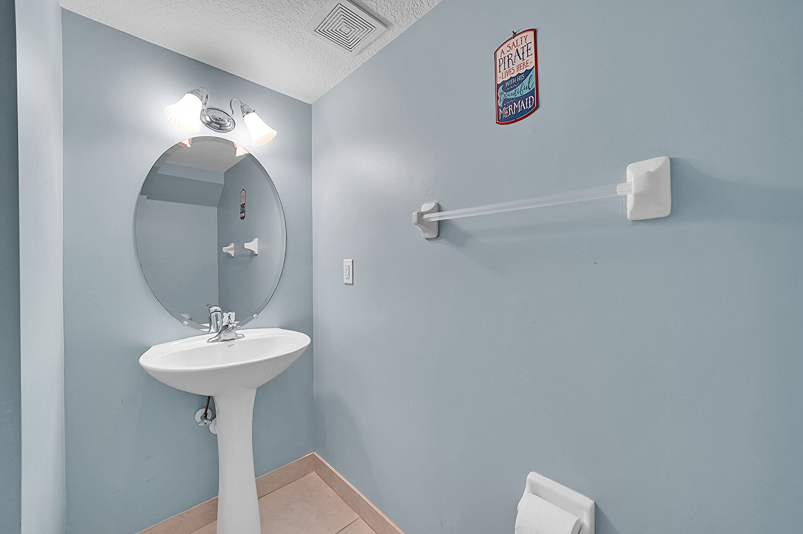 Baseboards Wall, Drywall, Full Bathroom, Half Bathroom, Textured Ceiling, Tile Floor, Vanity, Vent, Drywall, Half Bathroom, Tile Floor
