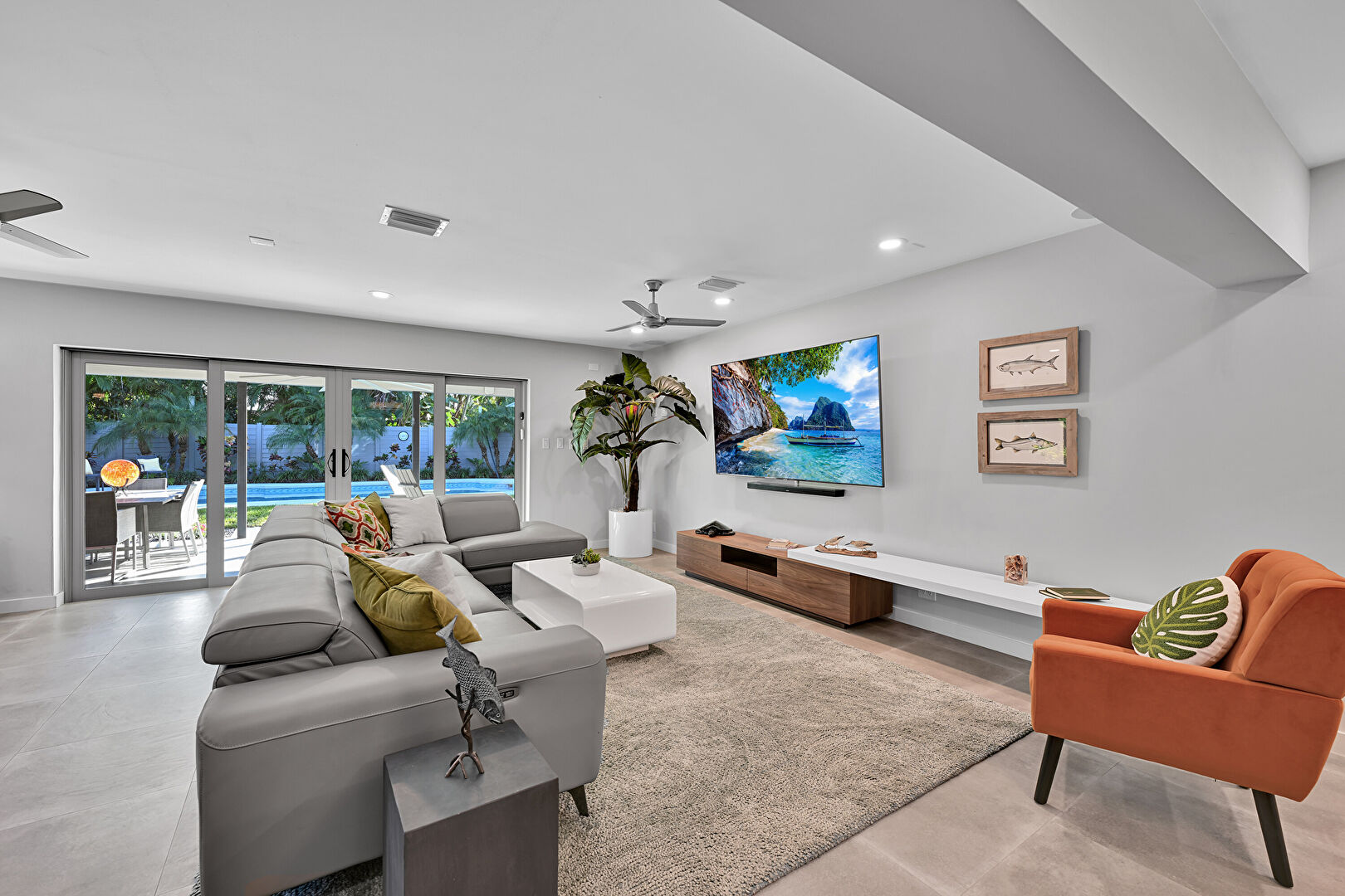 Ceiling Fan, Drywall, Natural Light, Sunroom, Tile Floor
