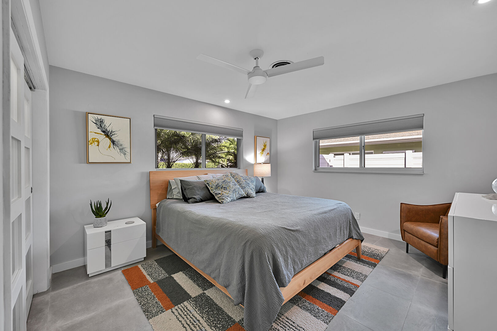 Access To Exterior, Baseboards Wall, Ceiling Fan, Closet, Concrete Floor, Drywall, Ensuite Bathroom, Natural Light, Recessed Lighting, Tile Floor, Vent, Access To Exterior, Drywall, Natural Light, Recessed Lighting