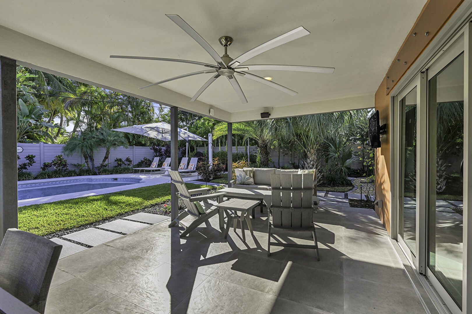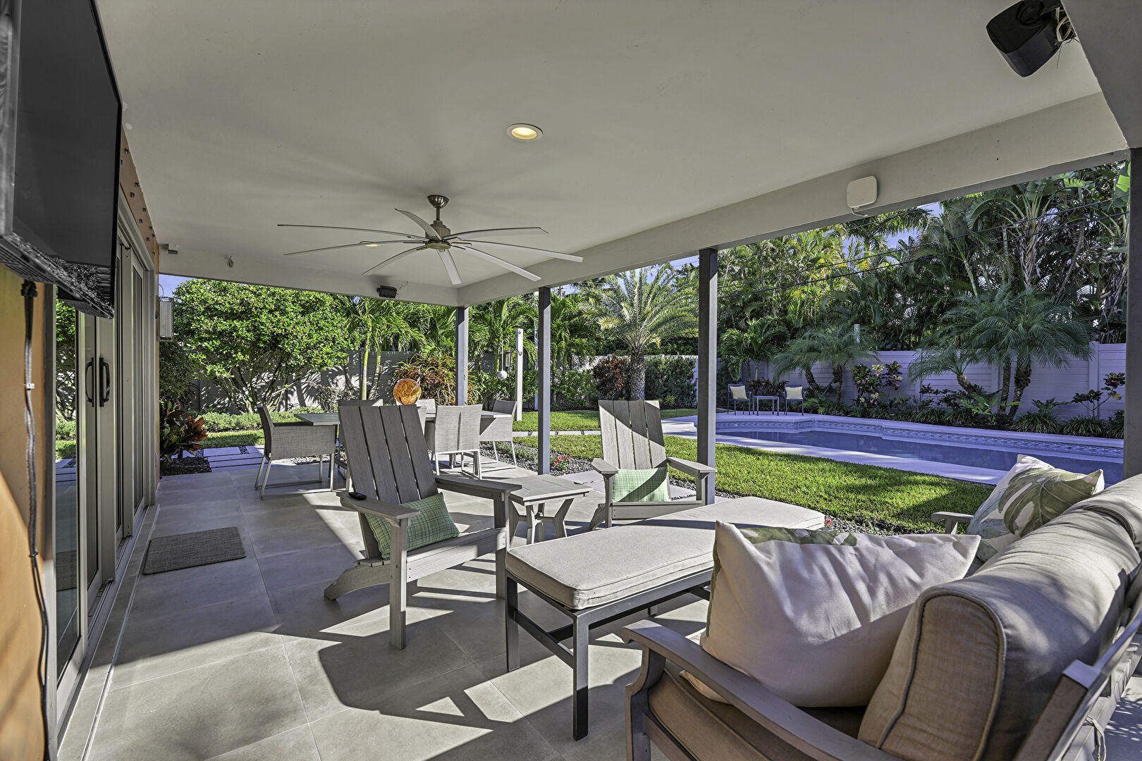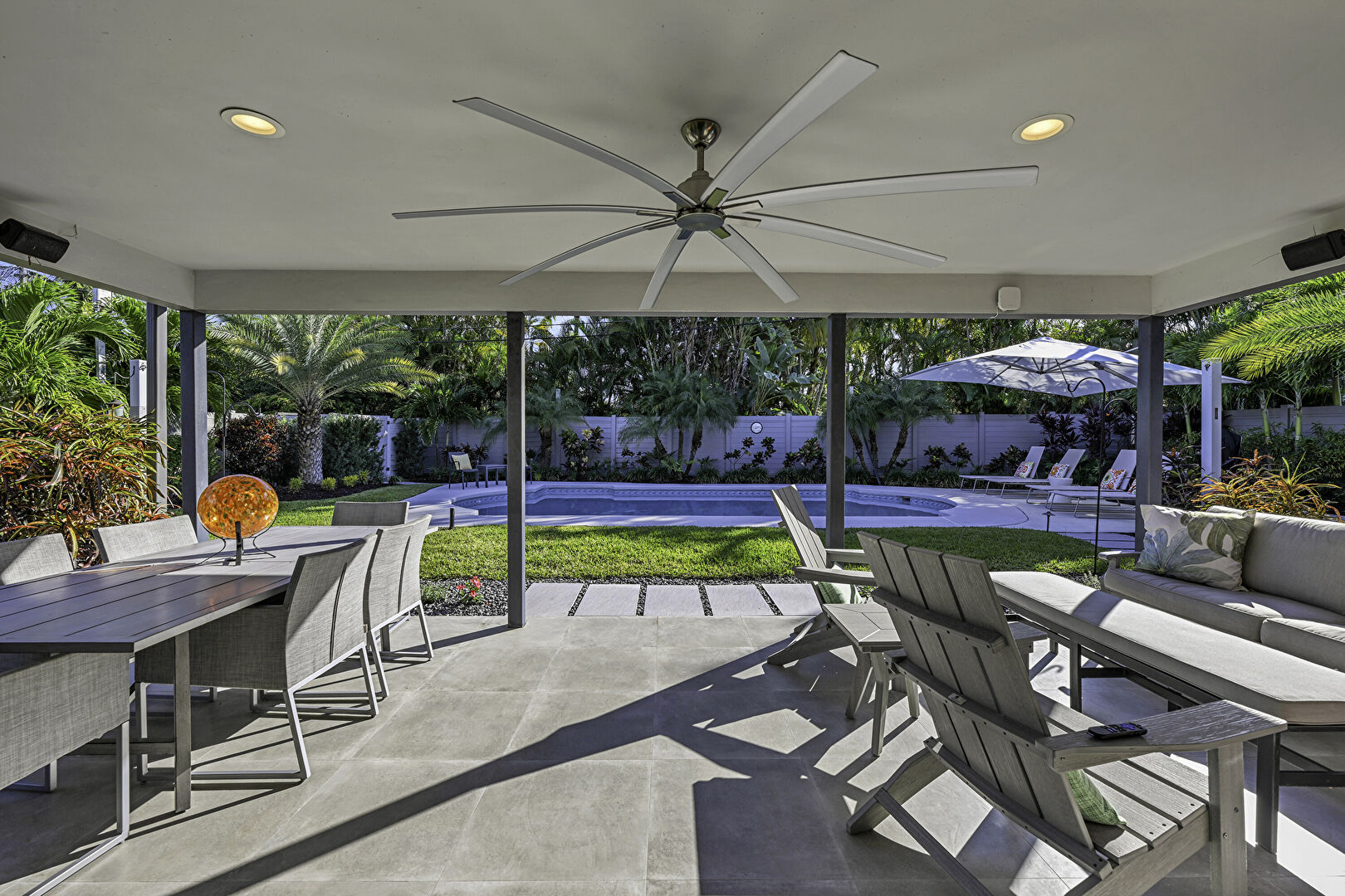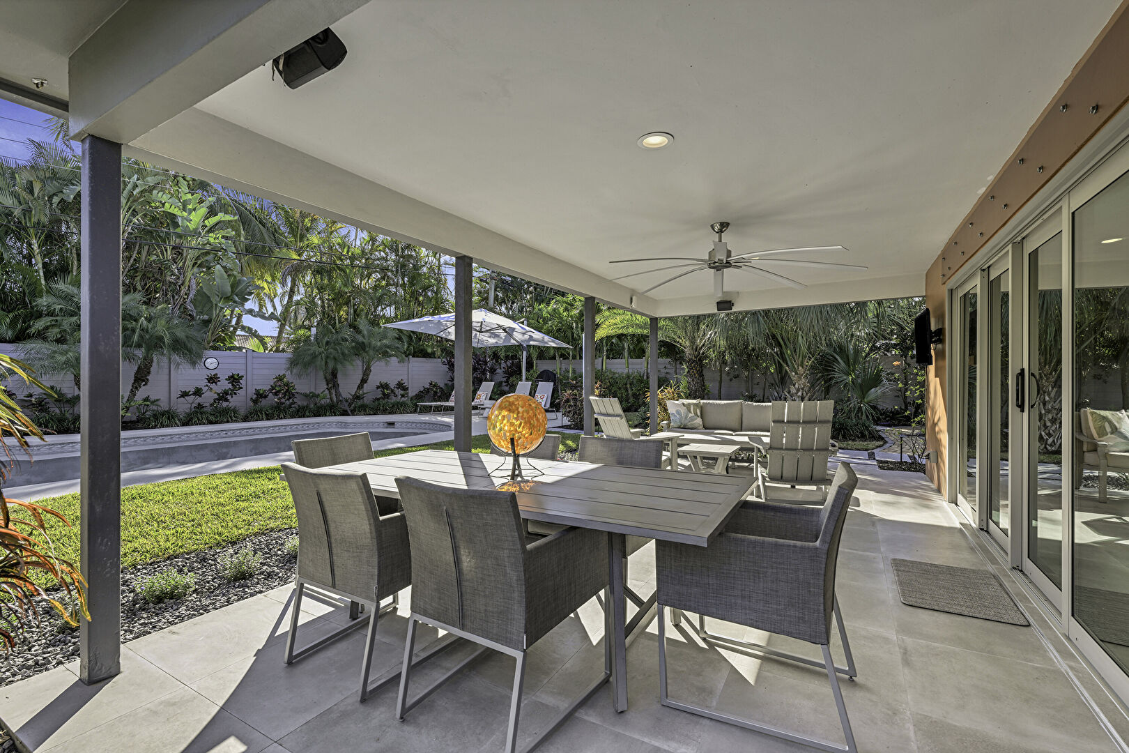 Ceiling Fan, Fence, Outdoor Dining Area, Outdoor Living Space, Patio, Pool, Ceiling Fan, Fence, Outdoor Living Space, Patio