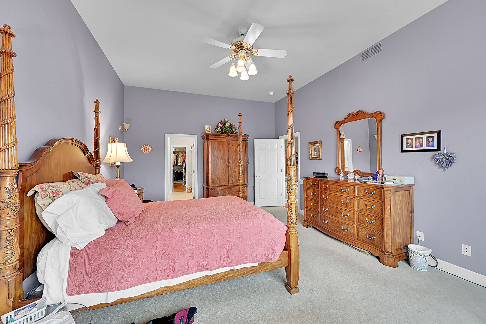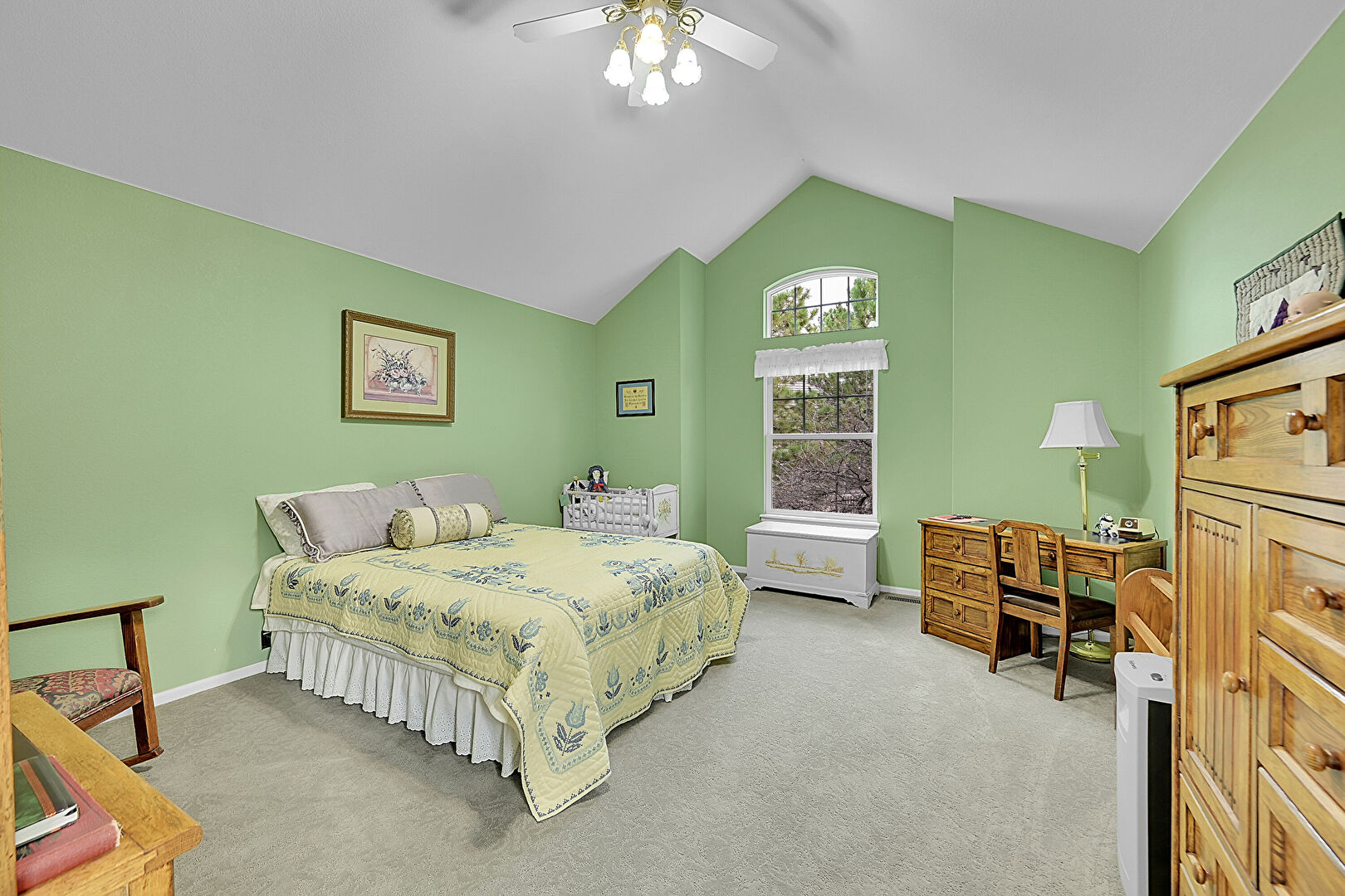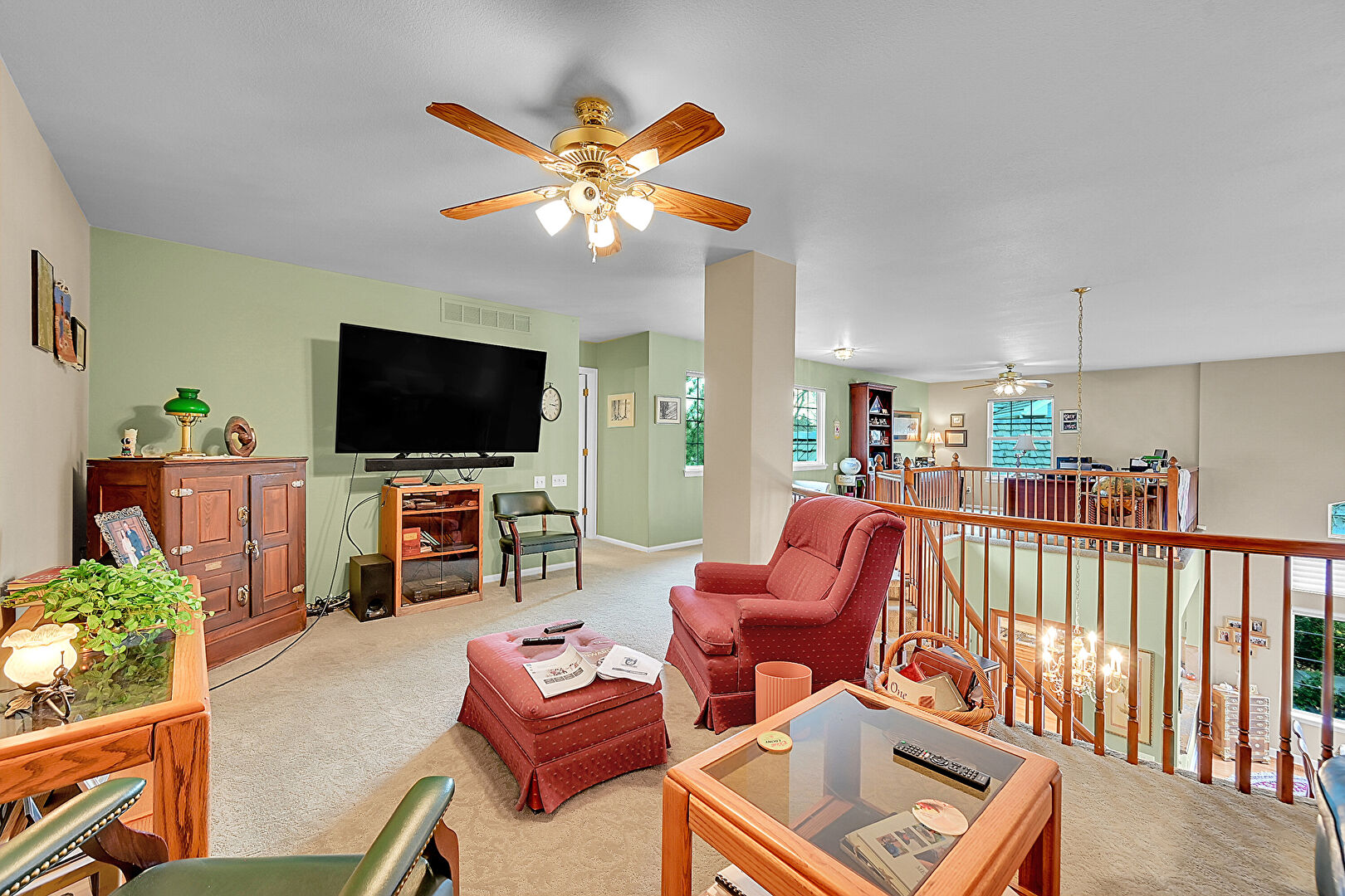 Baseboards Wall, Carpet, Cathedral Ceiling, Ceiling Fan, Drywall, High Ceiling, Natural Light, Recessed Lighting, Vaulted Ceiling, Vent, Baseboards Wall, Carpet, Ceiling Fan