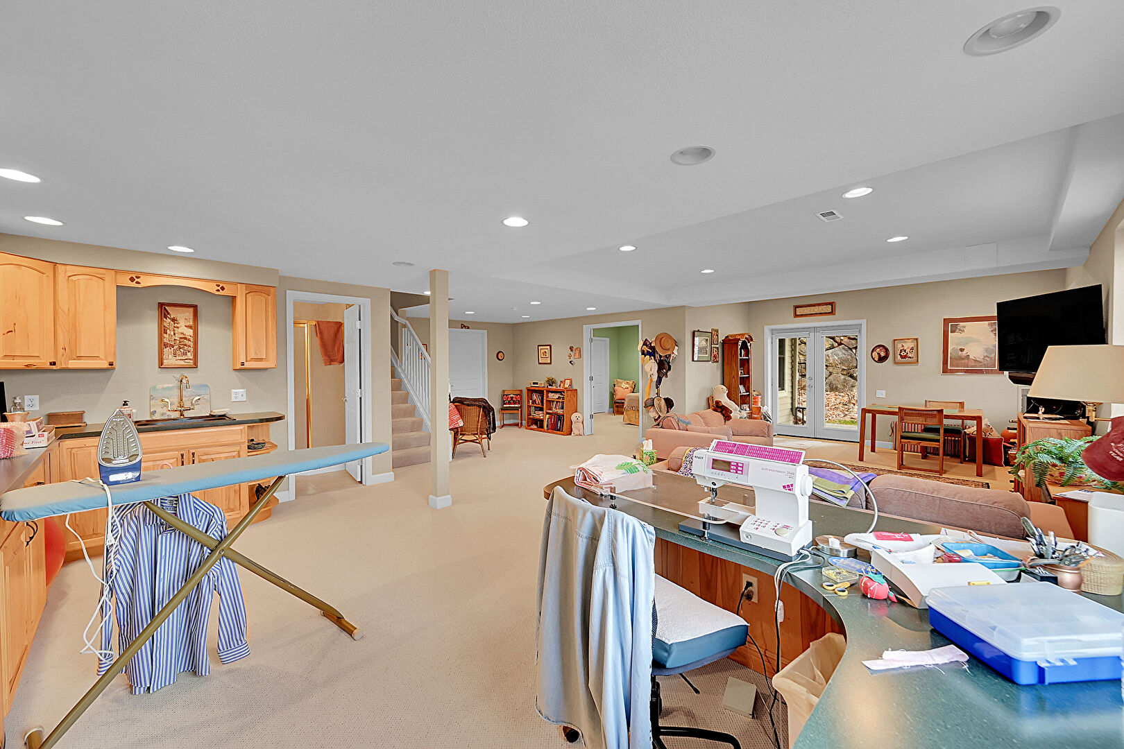 Carpet, Drywall, French Doors, Natural Light, Recessed Lighting, Basement