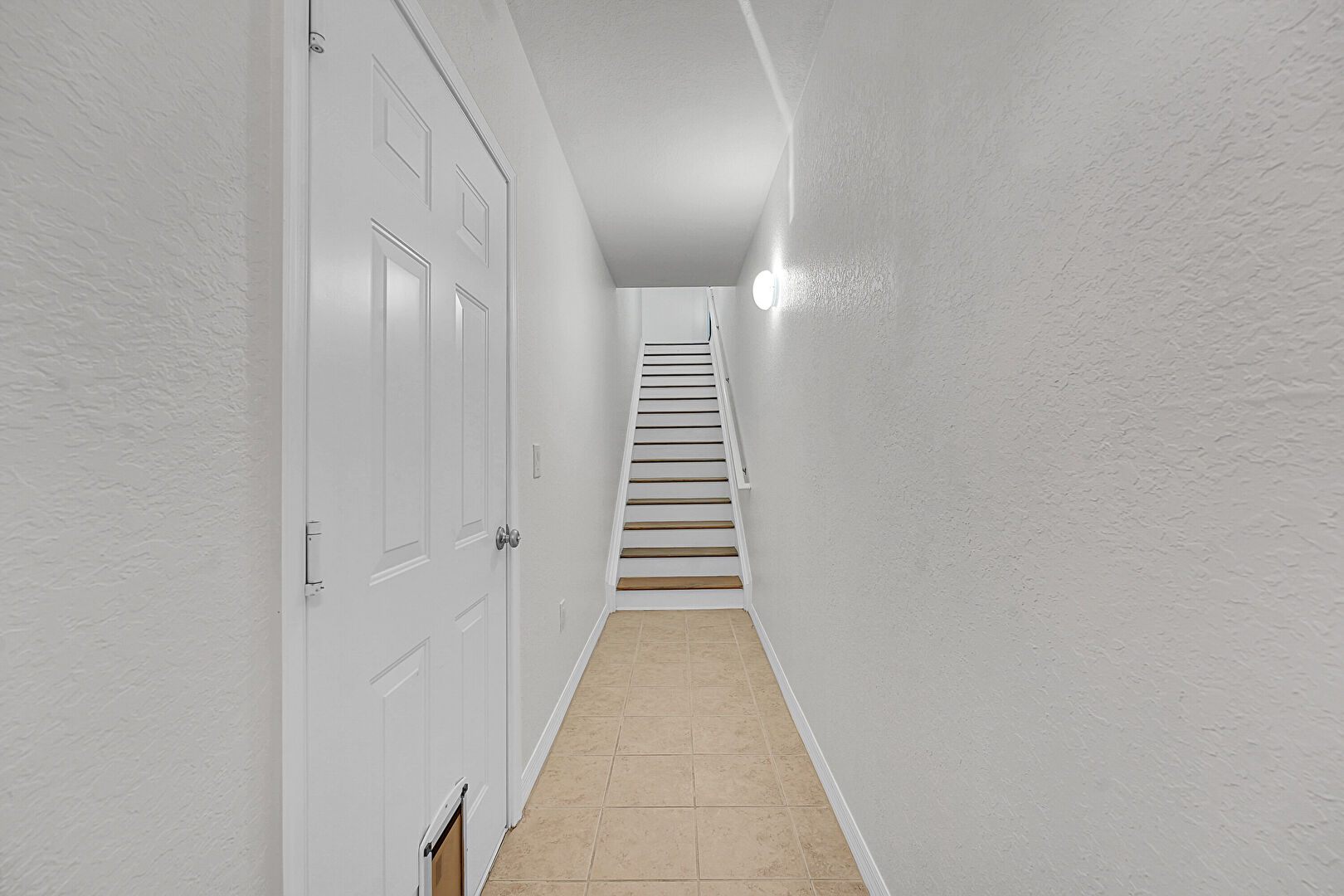 Stairs, Textured Wall, Tile Floor, Baseboards Wall