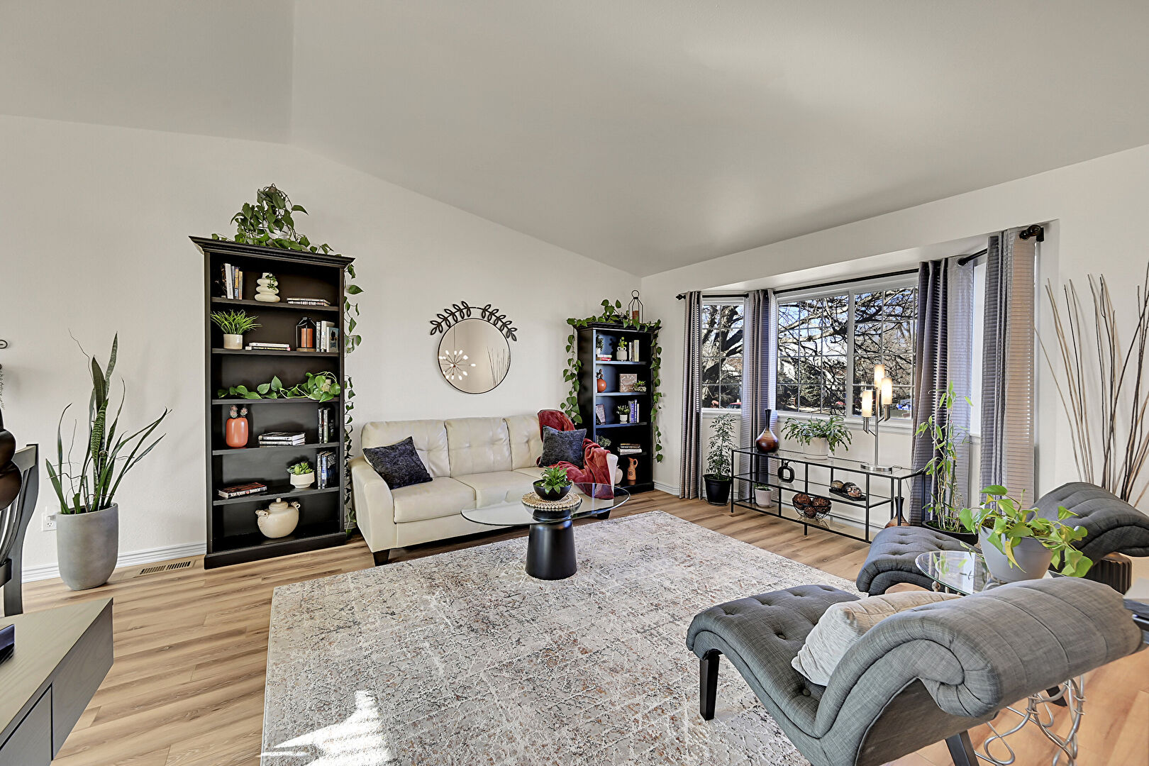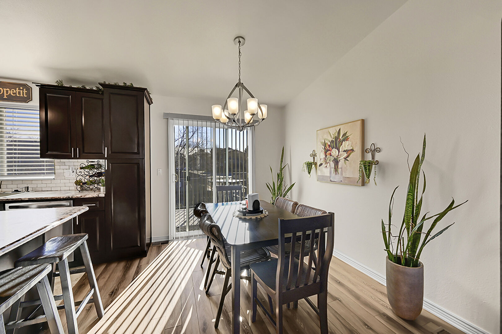 Baseboards Wall, Drywall, Natural Light, Tile Floor, Vaulted Ceiling, Wood Finish Floor, Notable Chandelier