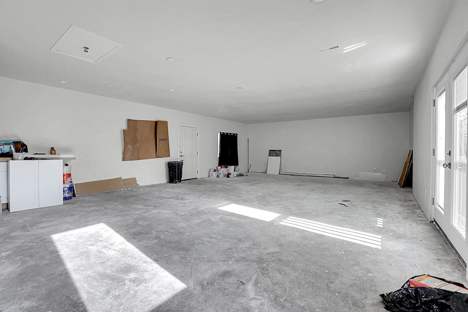 Concrete Floor, Drywall, French Doors, Natural Light, Recessed Lighting, Vent, Concrete Floor, French Doors, Furnace, Recessed Lighting