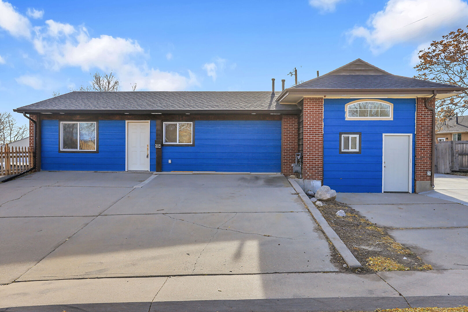 Brick Siding, Concrete Foundation, Downspout, Driveway, Fence, Gas Meter, Gutters, Horizontal Siding, Parking Pad, Shingle Roof, Brick Siding, Fence, Horizontal Siding