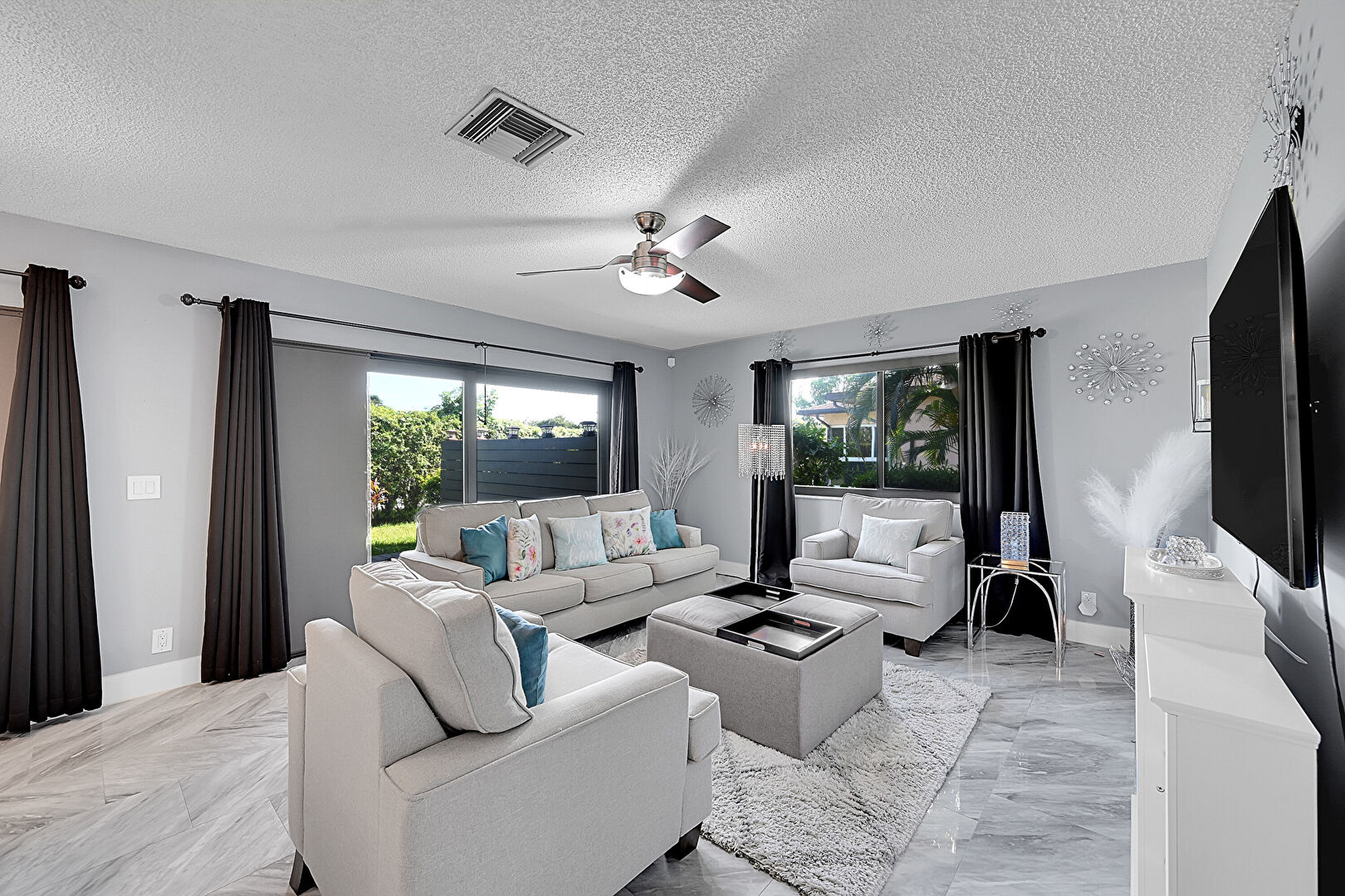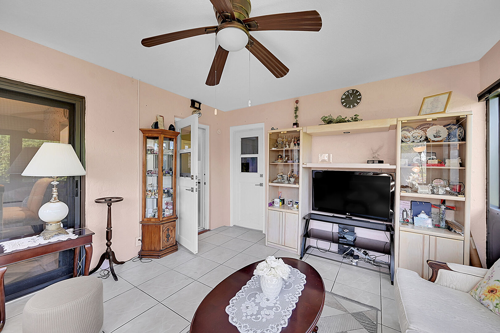 Baseboards Wall, Ceiling Fan, Drywall, Natural Light, Textured Wall, Tile Floor, Wall Mounted Ac, Sunroom, Tile Floor