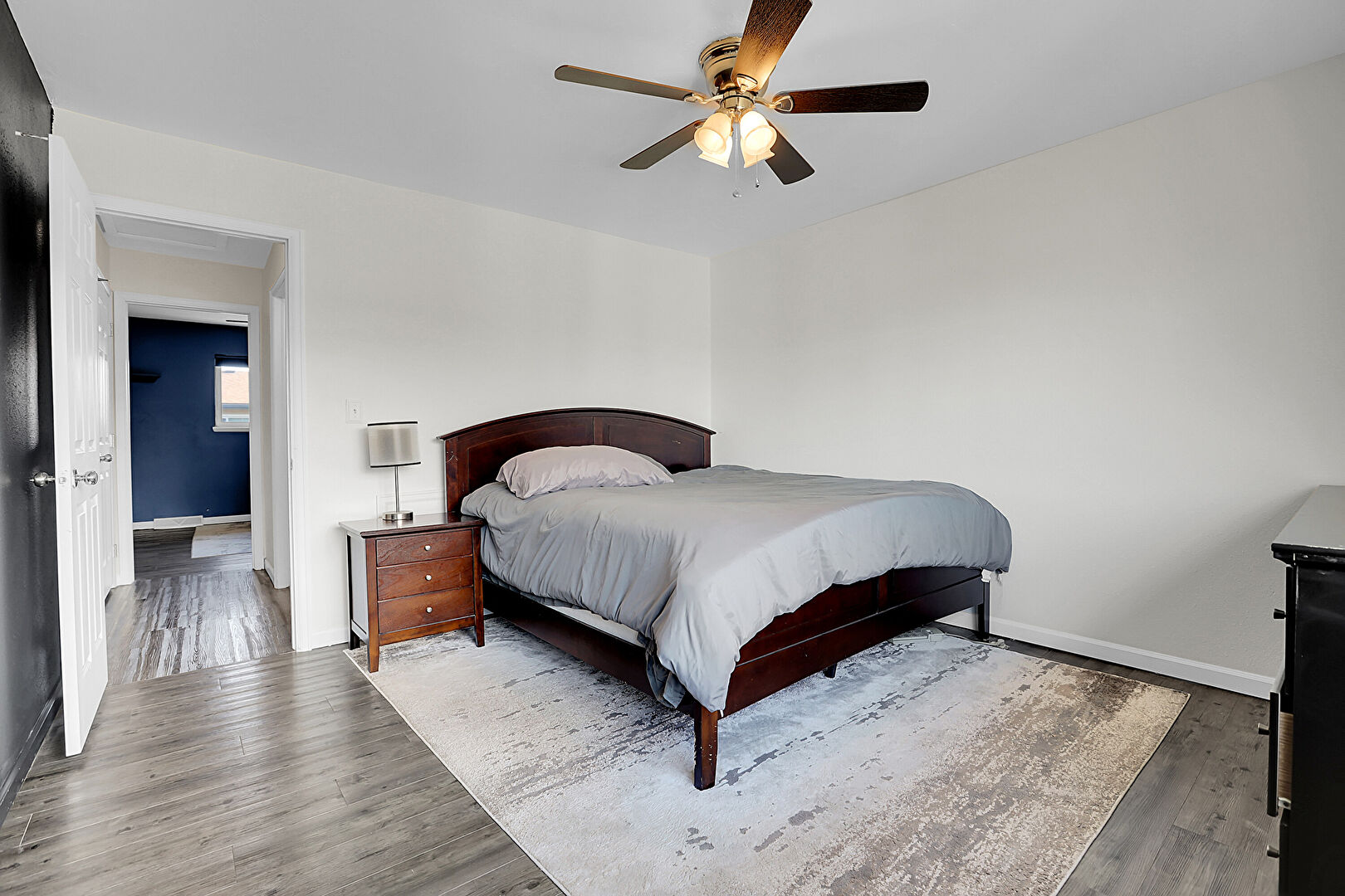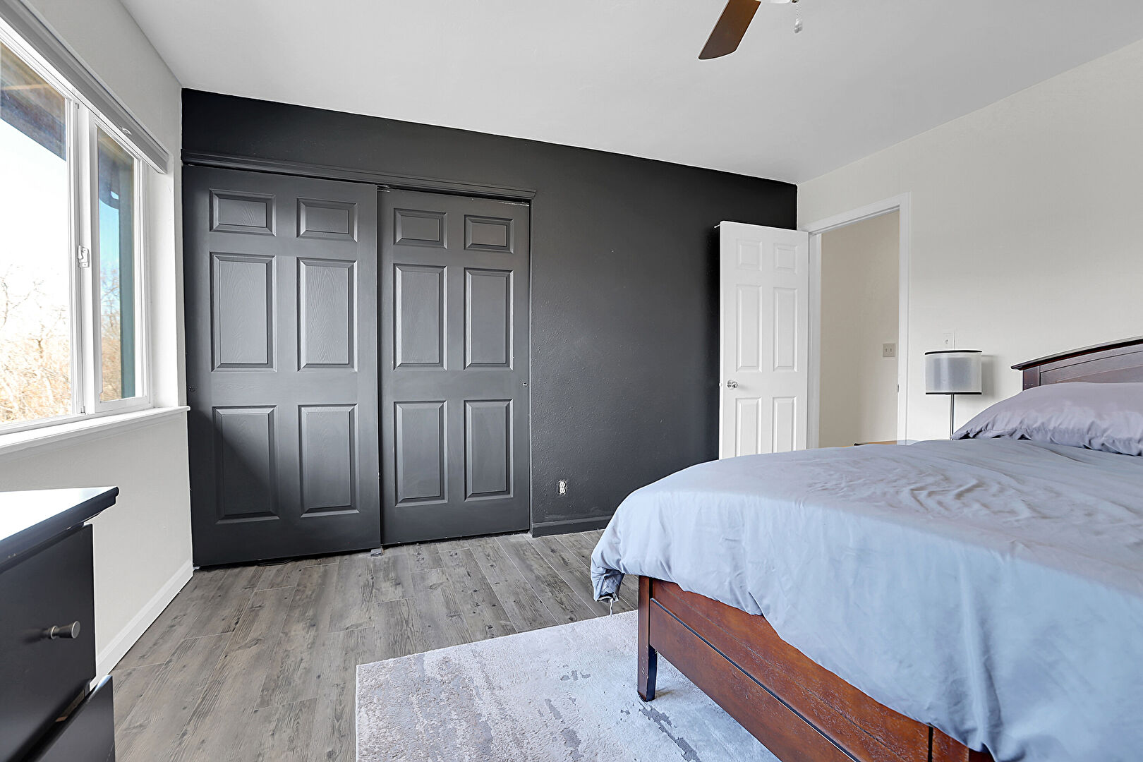 Baseboards Wall, Ceiling Fan, Drywall, Natural Light, Wood Finish Floor