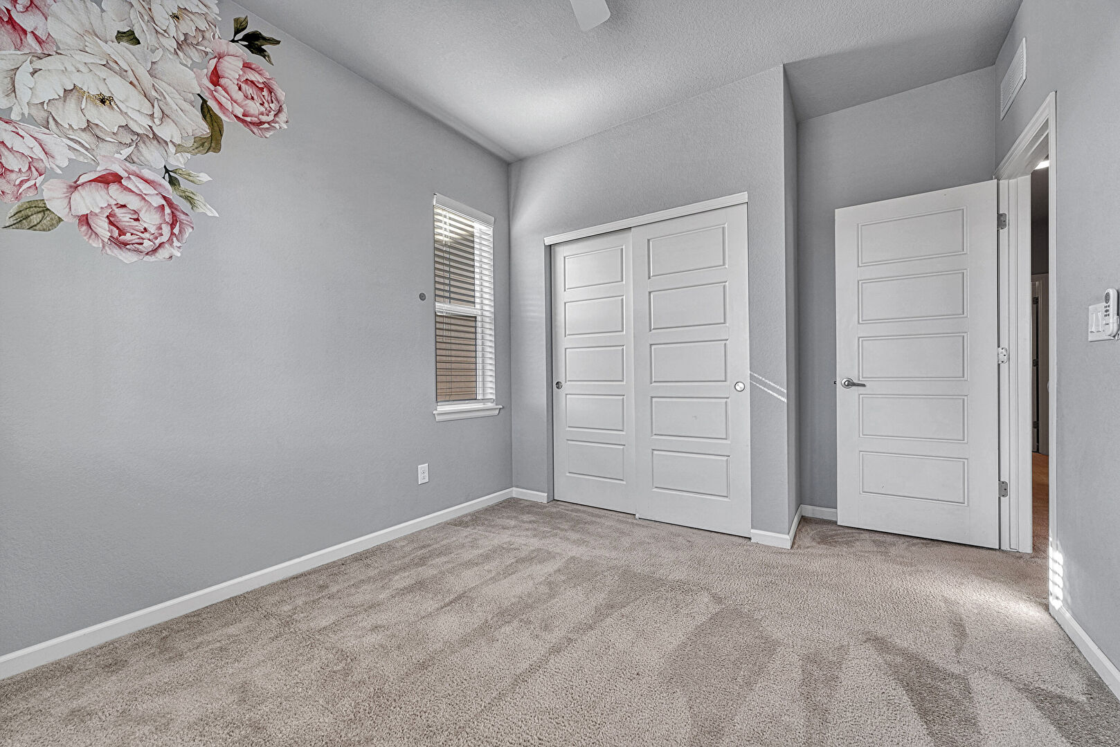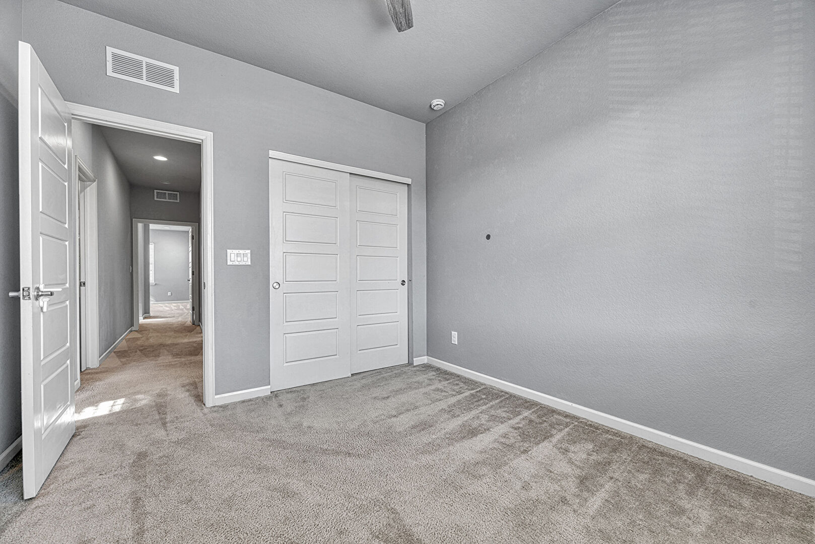 Baseboards Wall, Carpet, Ceiling Fan, Closet, Drywall, Natural Light, Textured Ceiling, Textured Wall, Vent, Baseboards Wall, Carpet, Ceiling Fan, Vent