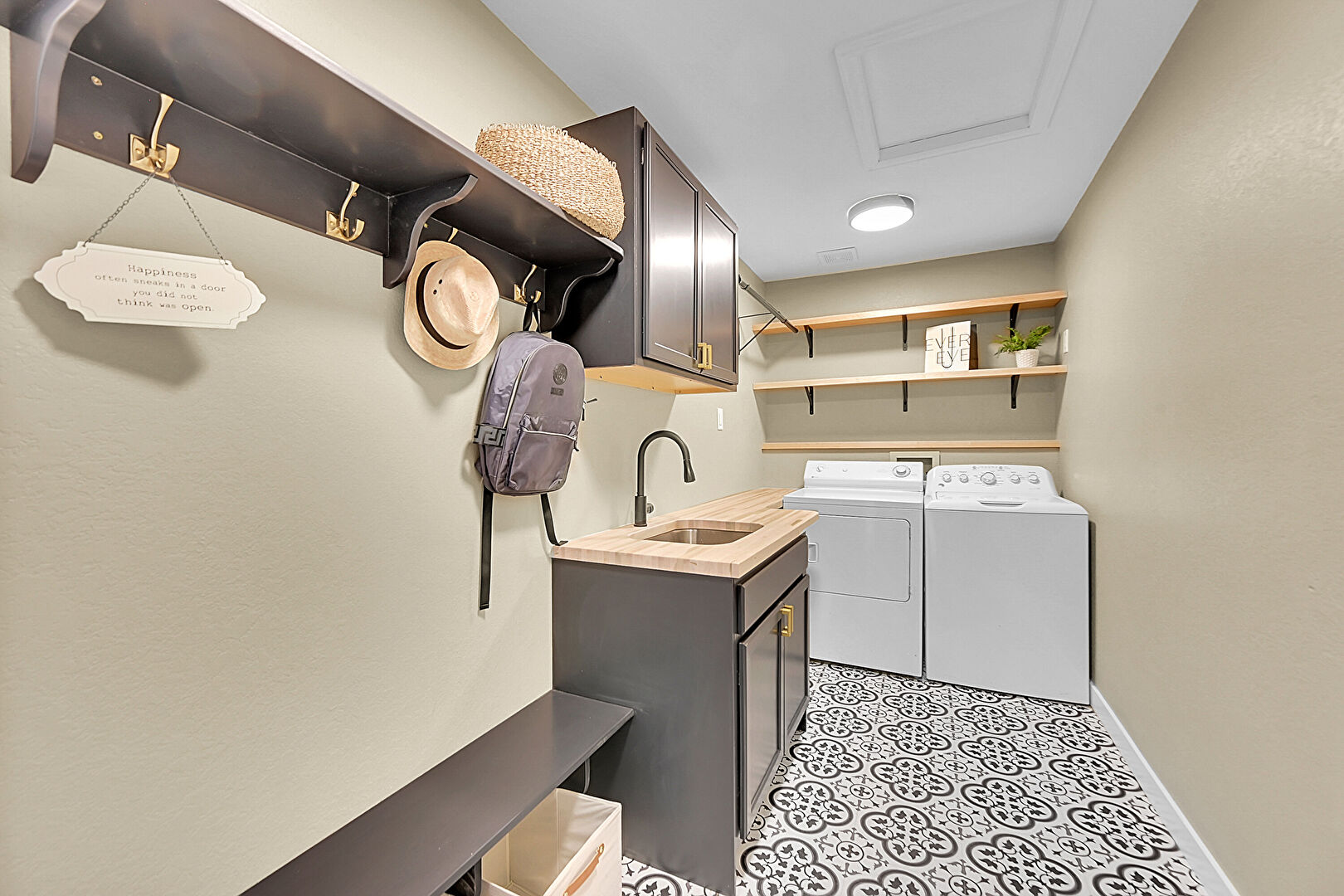 Baseboards Wall, Laundry, Scuttle, Textured Wall, Washer Hookup, Tile Floor