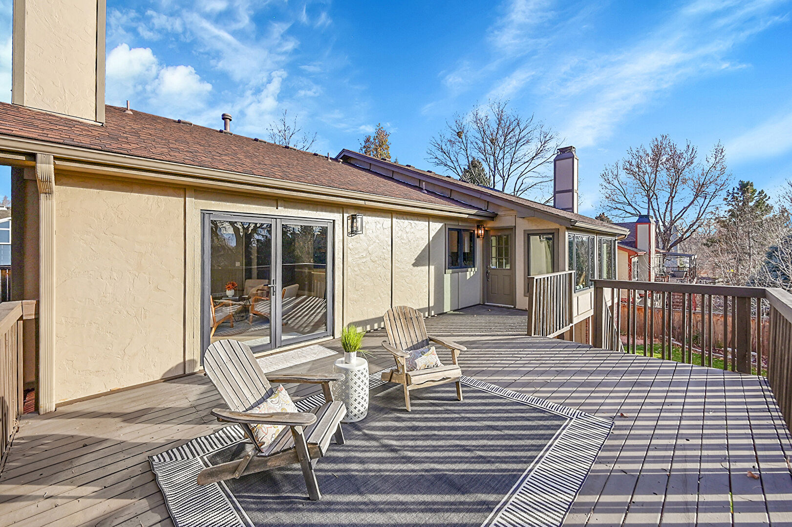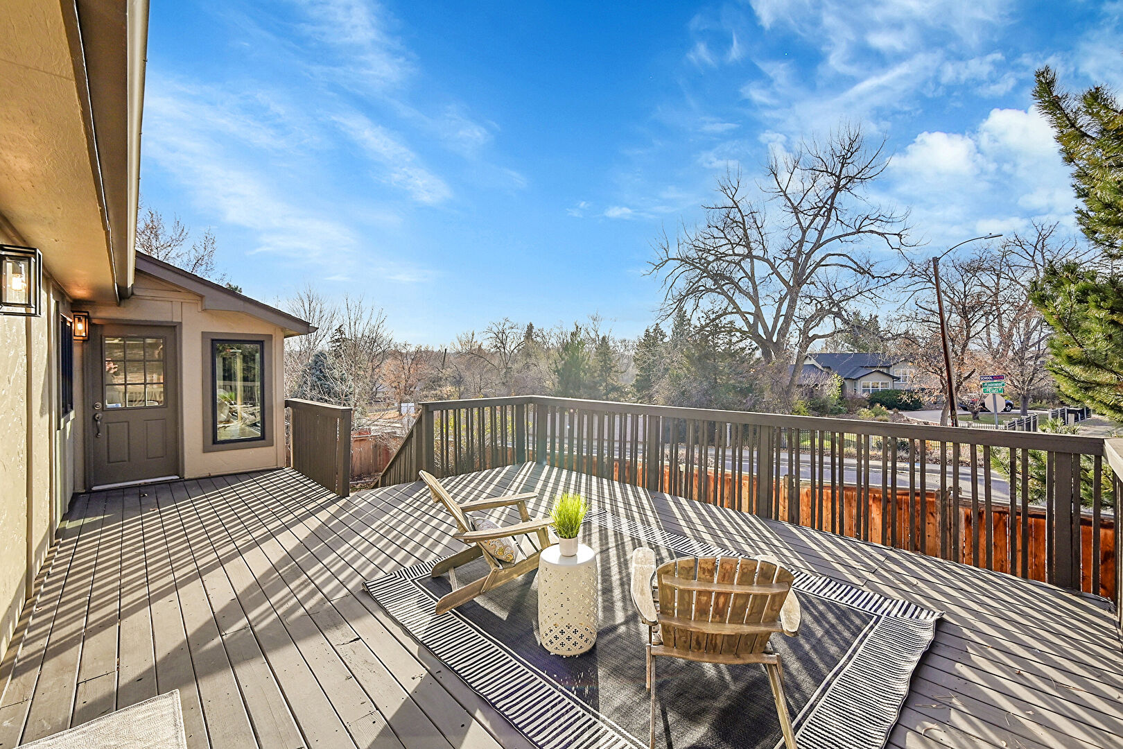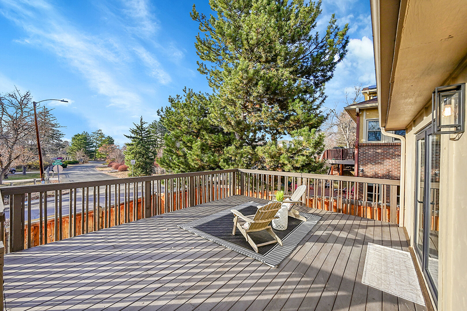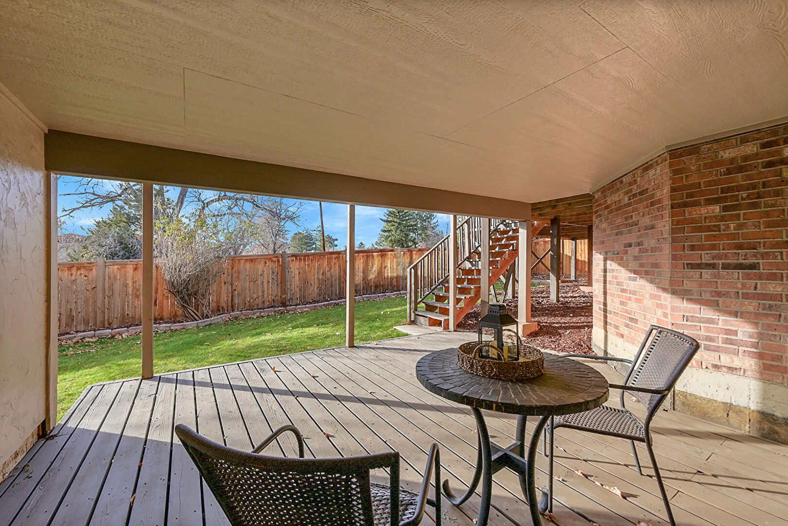 Deck, Fence, Stairs, Woods View, Deck, Lawn, Outdoor Dining Area