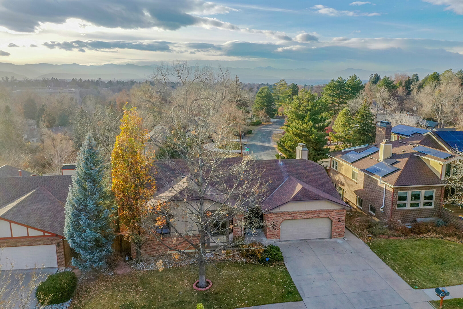 Board Batten Siding, Brick Siding, Chimney, Concrete Foundation, Downspout, Driveway, Fence, Gutters, Lawn, Shingle Roof, Stucco Siding, Vertical Siding, Board Batten Siding, Lawn