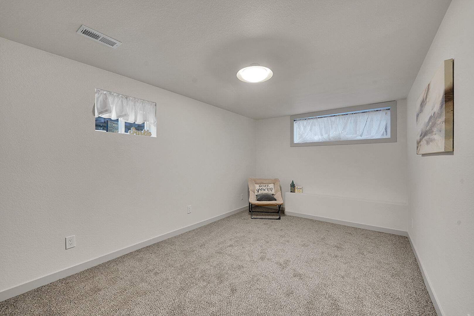 Basement, Carpet, Drywall, Natural Light, Vent, Baseboards Wall