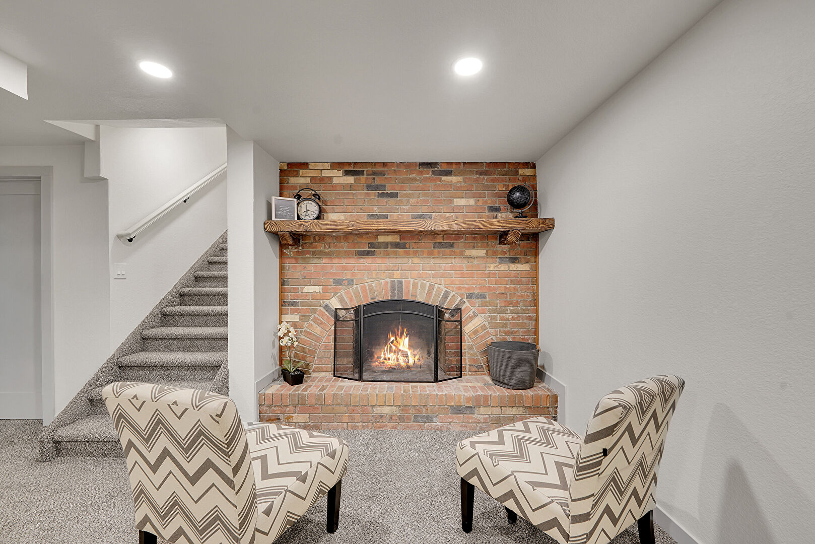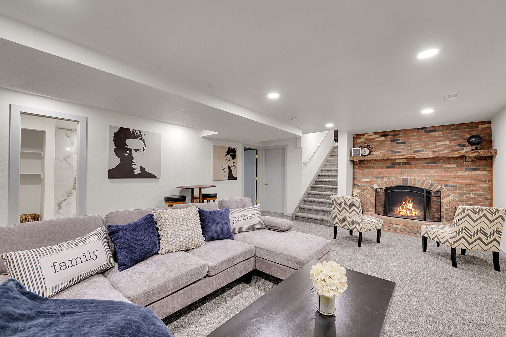 Baseboards Wall, Basement, Carpet, Drywall, Fireplace, Floor Ceiling Windows, Natural Light, Notable Chandelier, Recessed Lighting, Stairs, Sunroom, Textured Ceiling, Vaulted Ceiling, Vent, Wood Ceiling, Wood Finish Floor, Baseboards Wall, Basement, Fireplace, High Ceiling, Recessed Lighting, Vent, Wood Wall