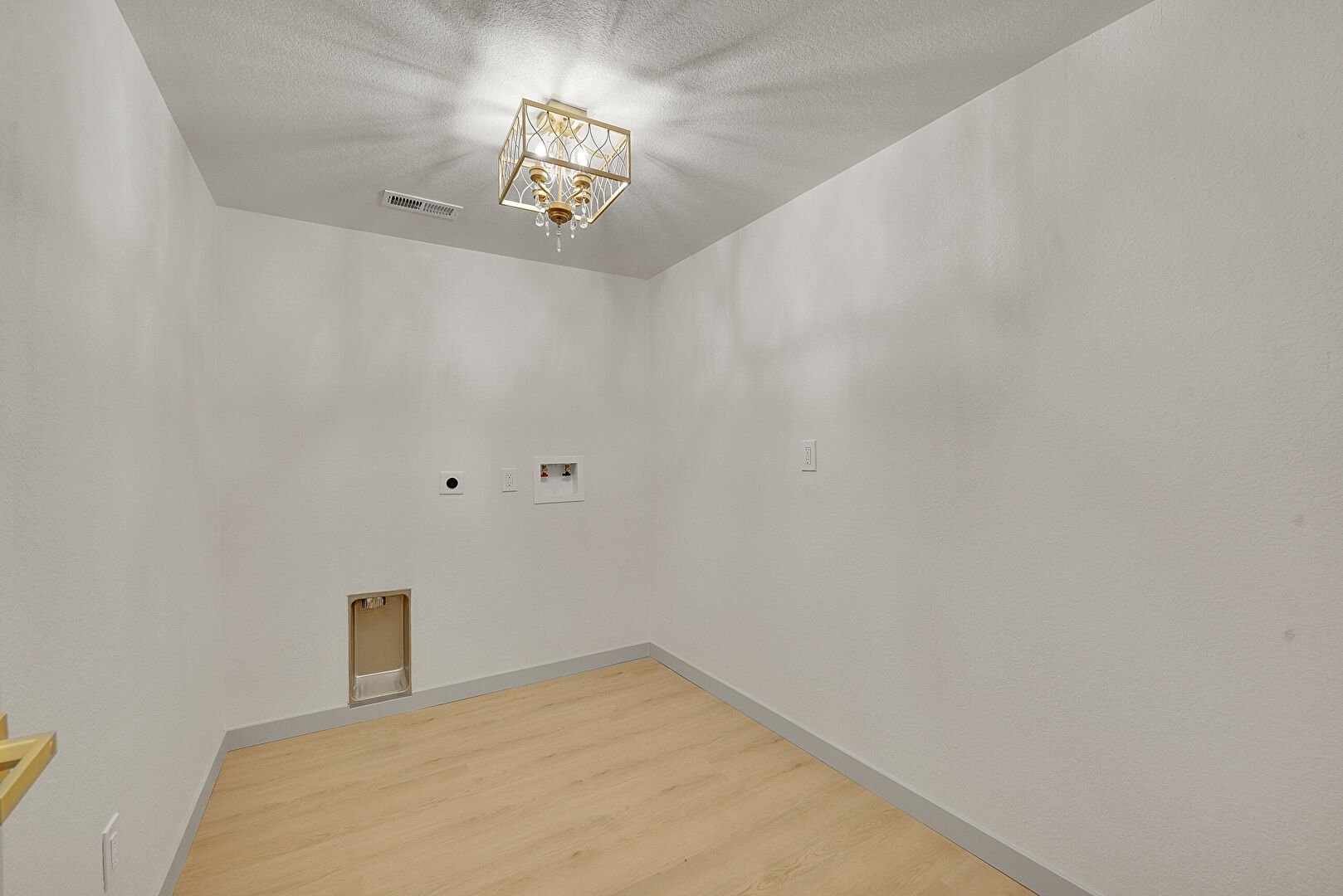 Baseboards Wall, Drywall, Electric Dryer Hookup, Laundry, Notable Chandelier, Textured Ceiling, Washer Hookup, Wood Finish Floor, Vent