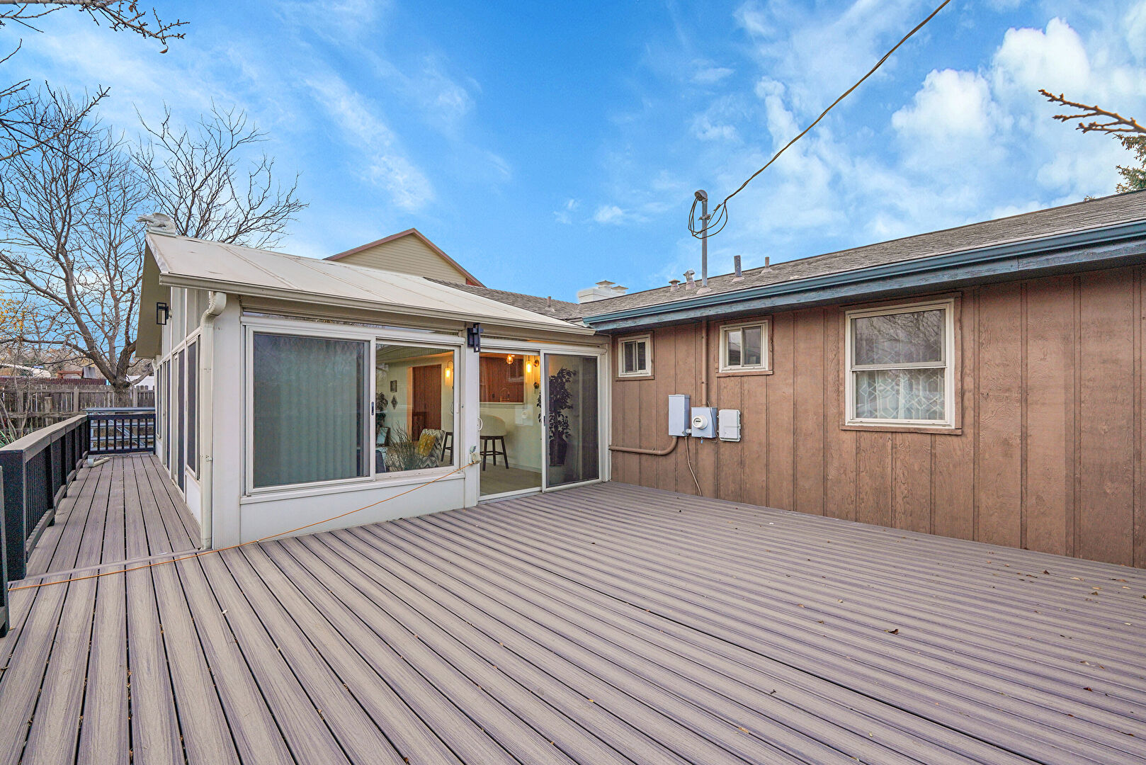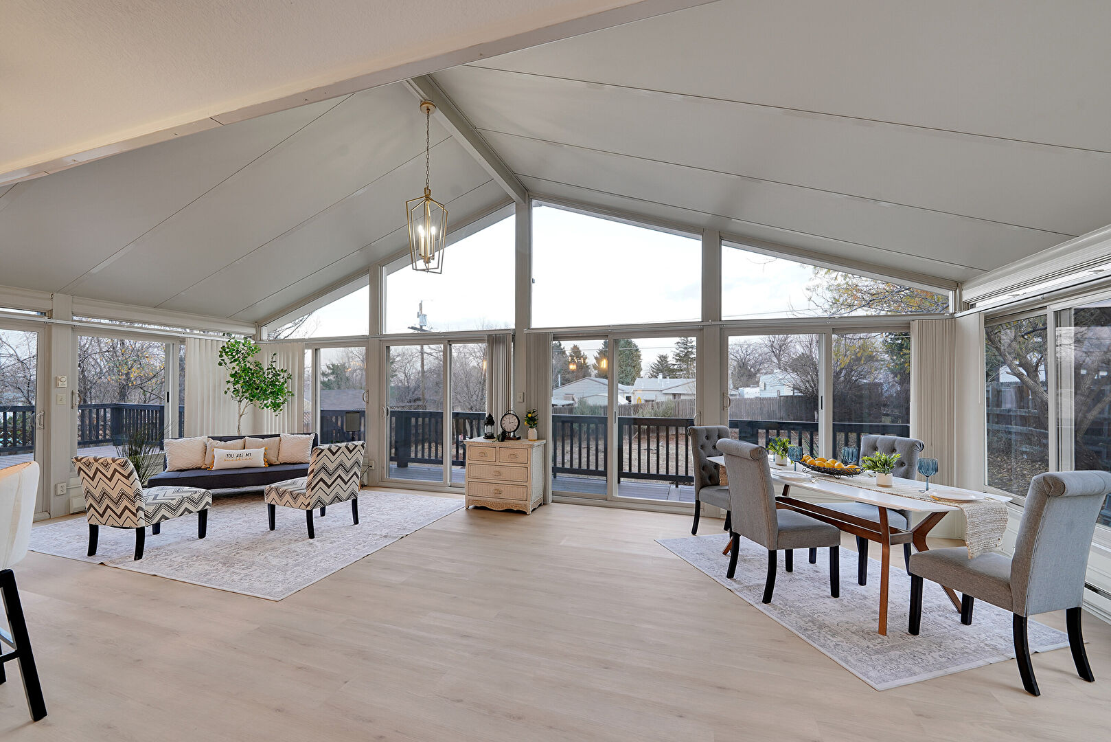 Chimney, Downspout, Fence, Glass Siding, Stairs, Sunroom, Vertical Siding, Deck