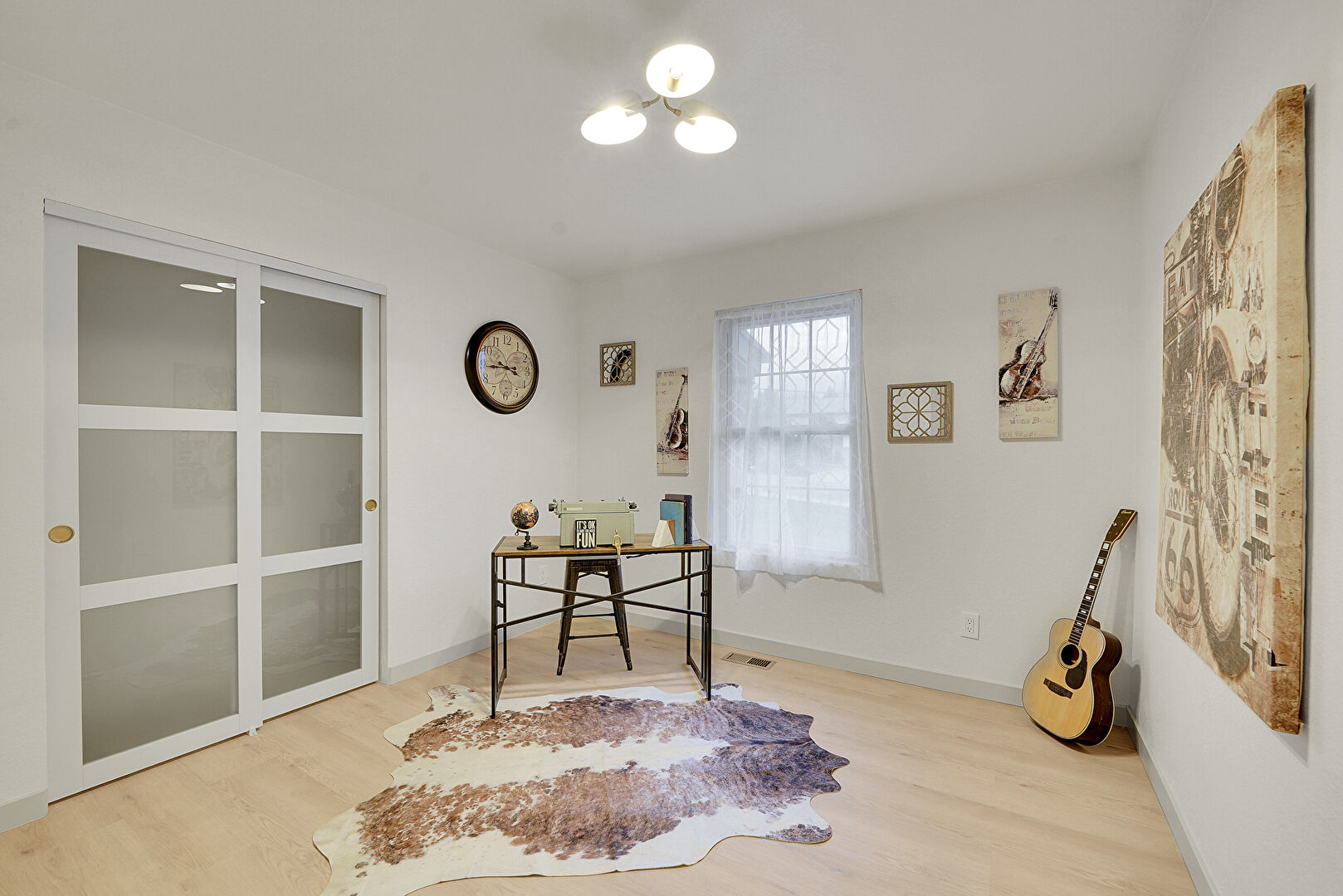 Baseboards Wall, Natural Light, Office Area, Vent, Wood Finish Floor, Drywall