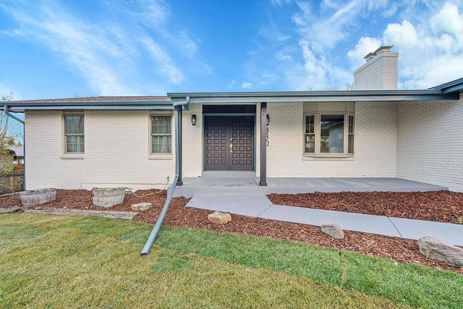 Brick Siding, Chimney, Downspout, Driveway, Fence, Gas Meter, Horizontal Siding, Lawn, Porch, Chimney, Driveway, Fence
