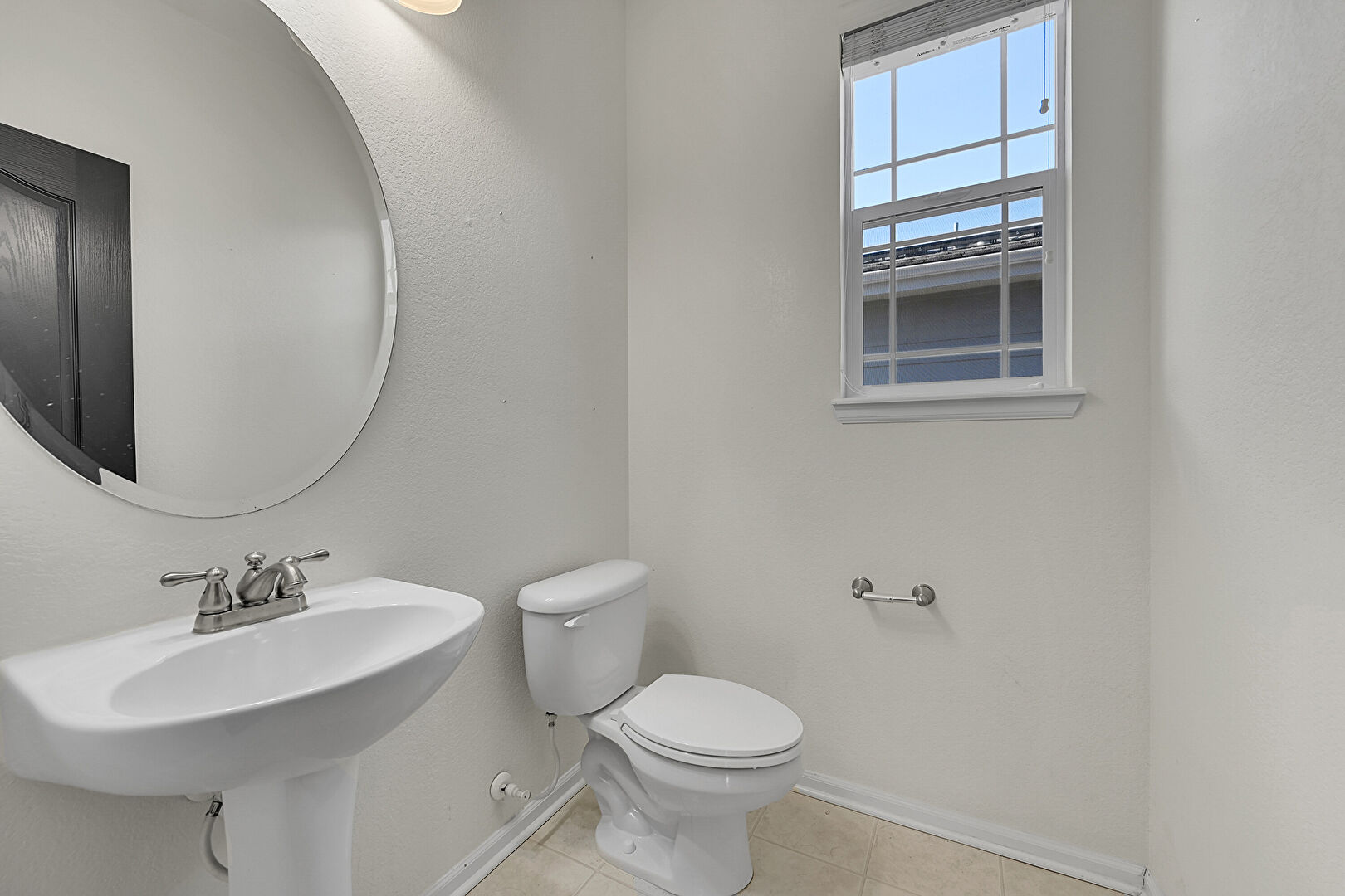 Baseboards Wall, Natural Light, Tile Floor, Half Bathroom