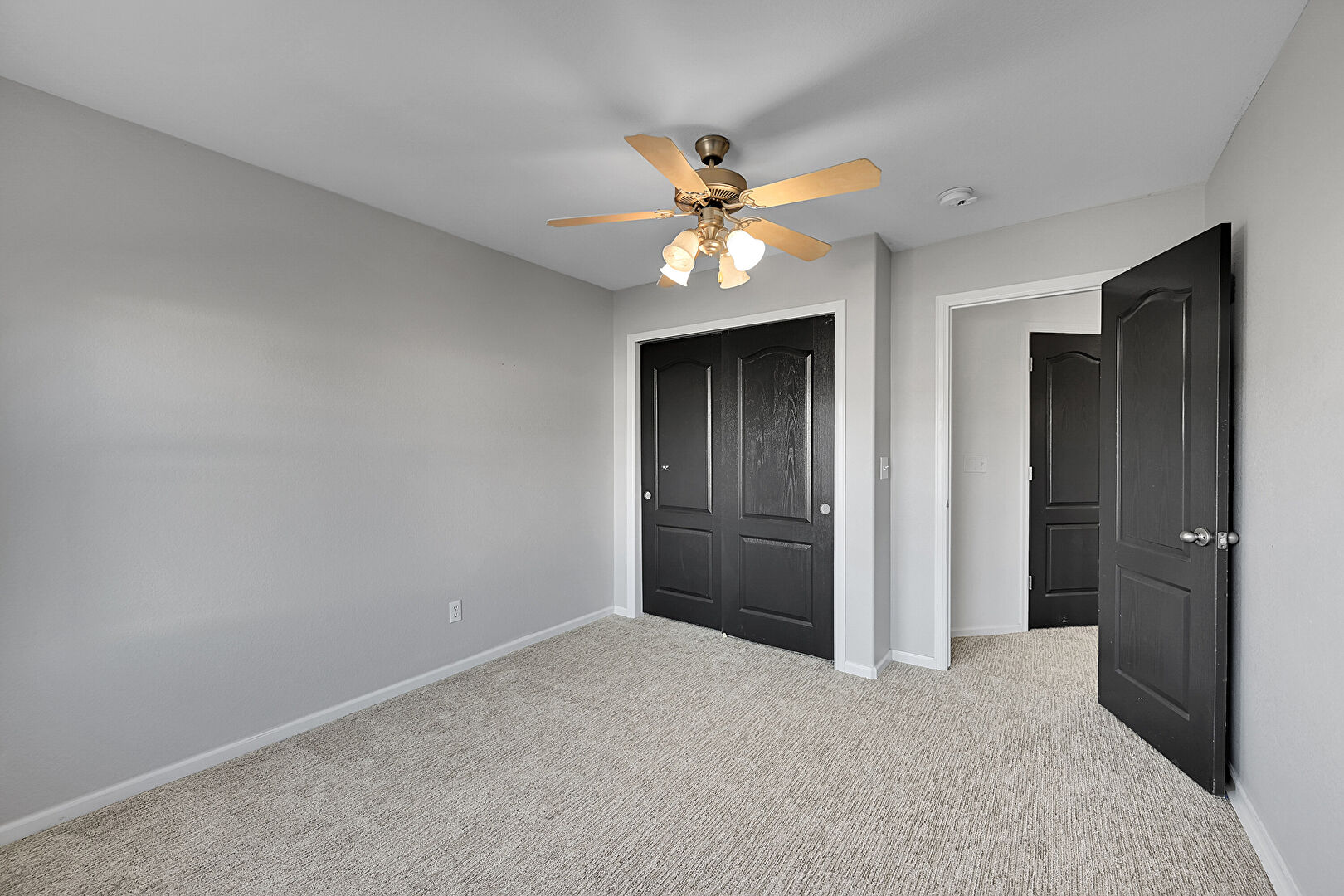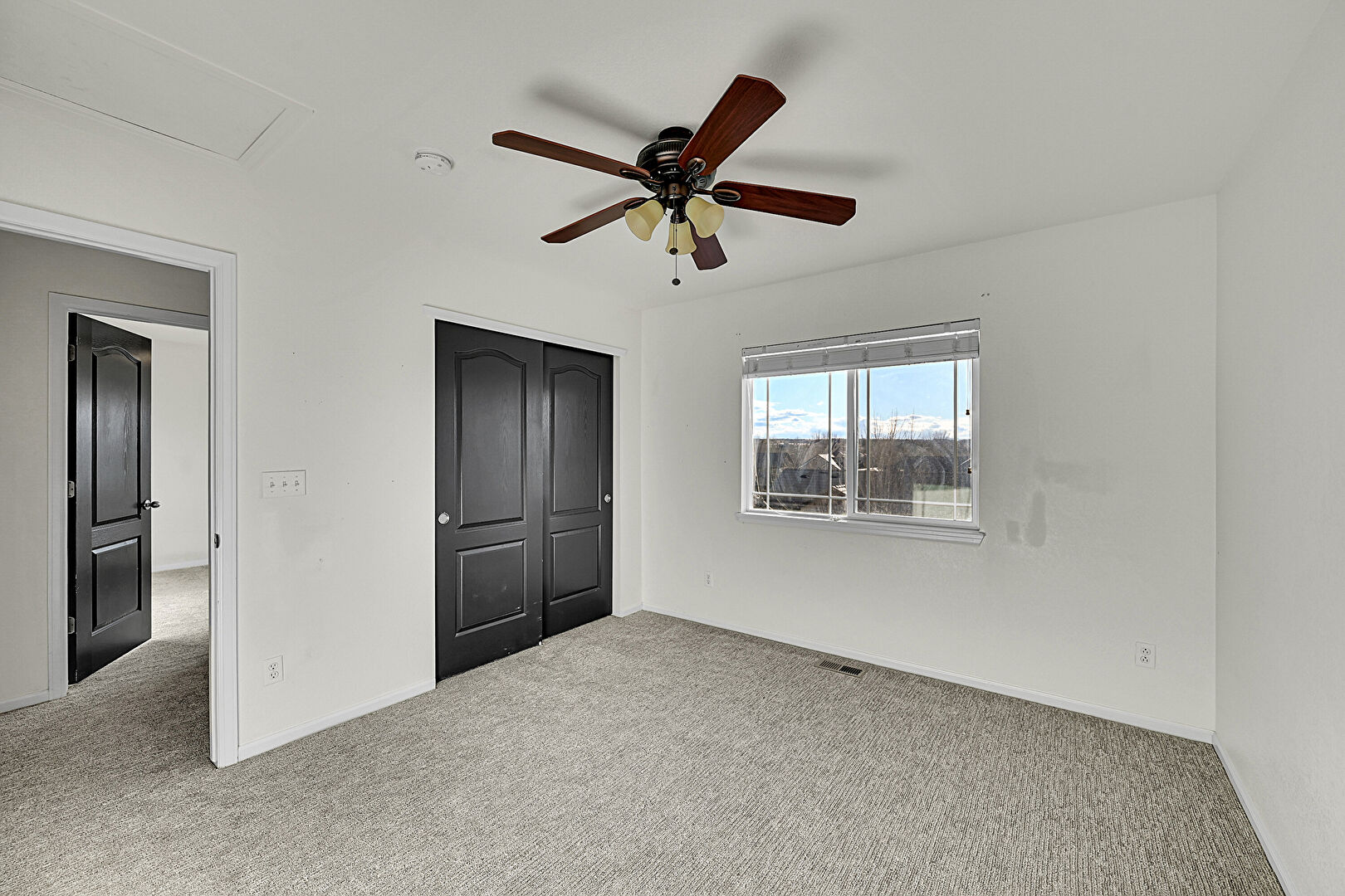 Baseboards Wall, Carpet, Ceiling Fan, Closet, Drywall, Smoke Carbon Monoxide Detector, Textured Wall, Vent, Ceiling Fan, Natural Light