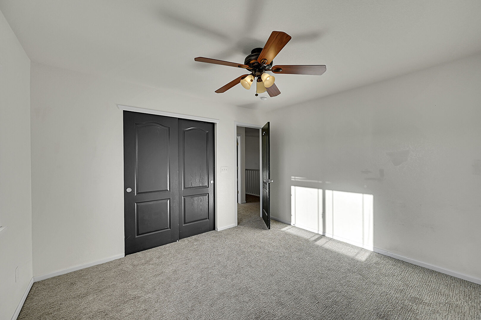 Baseboards Wall, Carpet, Ceiling Fan, Closet, Drywall, Natural Light, Vent, Carpet, Natural Light